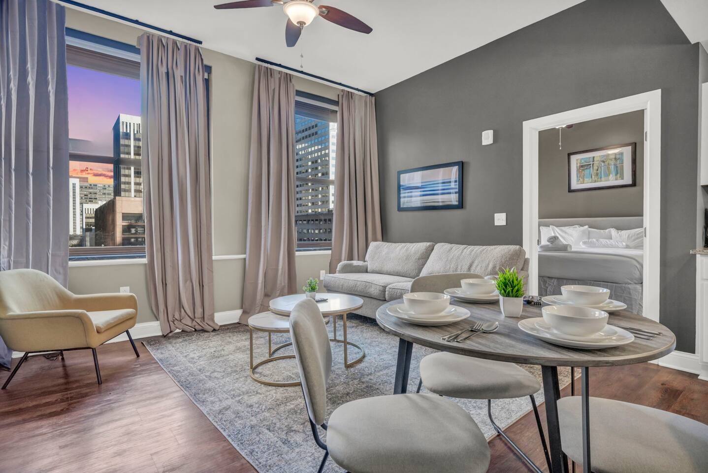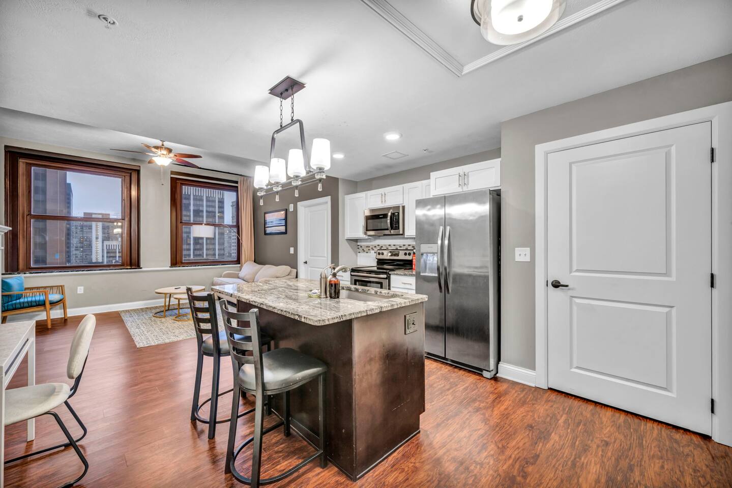★ ADDITIONAL ACCOMMODATION ★ Traveling in a larger group, or your preferred dates are already taken? You'll be happy to know that we offer additional units in the building with an option of renting multiple together. Please browse our host profile for the complete list of gorgeous listings. ★ CLEANING & SANITIZATION ★ Health, safety, and well-being of our guests are of utmost importance. For this reason, we use a thorough cleaning process after each check-out. ★ GUEST SCREENING & DAMAGE PROTECTION ★ The Primary Reservation holder must provide a valid Government-issued ID prior to check-in. ★ BUILDING & CONDO SECURITY MEASURES ★ • Minut noise detectors are located in the apartment and monitor noise levels. • Surveillance cameras monitor building common areas (never inside the unit). • 24/7 building security. ★ PETS ALLOWED ★ We love those little (and not so little) furry bundles of joy. We charge a $25 per night, $100 per week, or $300 per month pet cleaning fee (per pet). This fee will be charged via Airbnb Resolution Center if not collected at booking. ✔ Maximum of 2 pets, must be well trained. ✔ No aggressive breeds or pit bulls permitted. ★ NO SMOKING INSIDE ★ Please refrain from smoking inside the home. 🚭 Any evidence of smoking will result in fees for odor removal and furniture cleaning and immediate eviction without refund. ★ NO PARTIES/EVENTS ★ We kindly ask you to treat our home as your own to preserve its pristine condition for future guests and your return visits. Any unauthorized parties or events will result in immediate eviction without refund. ★ ADDITIONAL FEES ★ • Early Check-In: $25 (2 PM) or $50 (12 PM), subject to host approval and cleaner availability. • Late Check-Out: $25 (12 PM), subject to host approval and cleaner availability. • Lost Fob/Card: $150 replacement fee. Fobs/cards must be returned to the lockbox upon checkout. ★ AMENITY DISCLAIMER ★ • Amenities outside of the apartment (gym, garage, etc.) are managed by the building and subject to maintenance outside of our control. • Temporary amenity closures do not warrant a refund. Please inquire about amenity status before booking. ★ PARKING INFORMATION ★ • $20/day for unlimited in/out access for 1 car. Please message us to request a parking pass and we will send a payment request. • Parking garage is managed by an independent company across the building. • Garage clearance: 6'-3". ★ FIREPLACE NOTICE ★ The fireplace is for display only and is not functional