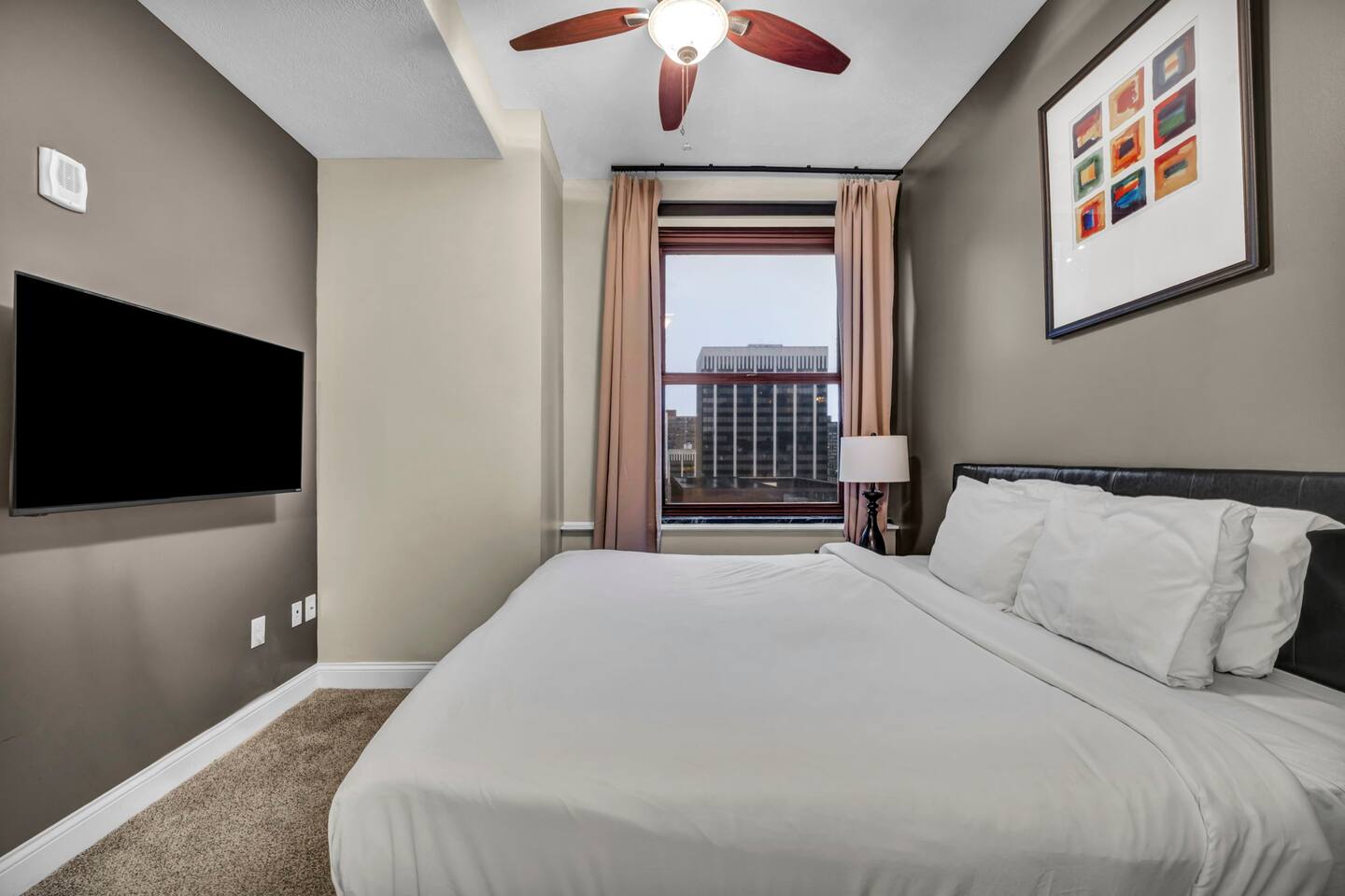 The luxurious condo is built to provide a premium getaway for visitors seeking the perfect stay. Its blend of modern elegance and upscale comfort in one of downtown Cleveland’s most desirable neighborhoods offers both relaxation and sophistication. Each room features high ceilings, stylish finishes, and carefully chosen décor that elevate the space with a contemporary yet timeless feel. Every detail is designed for comfort, from a fully equipped kitchen with modern appliances to cozy bedrooms with plush memory foam mattresses. Two highly comfortable bedrooms plus a sofa bed provide plenty of space for rest and relaxation after an exciting day exploring Cleveland. Finally, you’ll enjoy access to top-tier building amenities including a fitness center, fast elevators, 24/7 security, and nearby parking, all while being steps from restaurants, theaters, and sporting events. ★ LIVING ROOM ★ The living room is perfect for unwinding after a day in the city. Lounge on the sofa, stream your favorite shows, or enjoy the stylish setting. ✔ Queen-Size Sofa Bed ✔ Elegant Décor & Finishes ✔ 55" Smart TV with Streaming Apps ✔ Stylish Coffee Table ✔ Comfortable Seating ★ KITCHEN & DINING ★ Cook and dine in style with a chef-inspired kitchen, or take advantage of the incredible dining options just steps away. ✔ Stove & Oven ✔ Microwave ✔ Coffee Maker ✔ Toaster ✔ Blender ✔ Refrigerator/Freezer ✔ Dishwasher ✔ Sink – Hot & Cold Water ✔ Glassware, Silverware, Pots & Pans ✔ Washer/Dryer ✔ Dining Table with Seating for 4 ✔ Kitchen Island with Seating for 3 ★ SLEEPING ARRANGEMENTS – 2 BEDROOMS ★ Each bedroom is designed for comfort, relaxation, and restful sleep. ♛ Master Bedroom: King-Size Memory Foam Bed ♛ Bedroom 2: Queen-Size Memory Foam Bed ♛ Living Room: Queen-Size Sofa Bed ✔ Premium Pillows, Linens, and Sheets ✔ Spacious Closets with Hangers and Shelves ✔ Night Stands with Reading Lamps ✔ Smart TVs ★ BATHROOMS ★ Enjoy spa-like bathrooms stocked with essentials for your convenience. ✔ Walk-In Shower ✔ Modern Vanity with Mirror ✔ Toilet ✔ Towels ✔ Hair Dryer ✔ Essential Toiletries ★ BUILDING AMENITIES ★ ✔ Parking Available ($20/day charged after booking is approved if requested, unlimited in/out access. Most parking garages in downtown charge $10-20 per 1 entry/day) ✔ 24/7 Security ✔ Fast Elevators ✔ Fully Equipped Gym ✔ On-Site Dining Options Nearby ★ PRIME DOWNTOWN LOCATION ★ You’re within easy walking distance of Cleveland’s top attractions: ✔ Rocket Mortgage FieldHouse – 10 min walk ✔ Progressive Field – 12 min walk ✔ FirstEnergy Stadium – 12 min walk ✔ Huntington Convention Center – 8 min walk ✔ East 4th Street Dining – 6 min walk ✔ Rock & Roll Hall of Fame – 14 min walk ✔ Public Square Park – 5 min walk ✔ Lake Erie Waterfront & Pier – 14 min walk Nearby Dining: Marble Room (3 min walk), Butcher and the Brewer (6 min walk), Mabel’s BBQ (6 min walk), TownHall (7 min drive). Nearby Parks: Perk Park (5 min walk), Mall B (6 min walk), Edgewater Park & Beach (12 min drive). Medical Facilities: Cleveland Clinic (15 min drive), University Hospitals (15 min drive), MetroHealth (12 min drive). Universities: Cleveland State University (12 min walk), Case Western Reserve (15 min drive). This property combines downtown luxury with modern comfort, making it the perfect base for business, leisure, or convention travel. Whether you’re here for dining, theater, sports, or the lakefront, you’ll be right in the heart of it all.