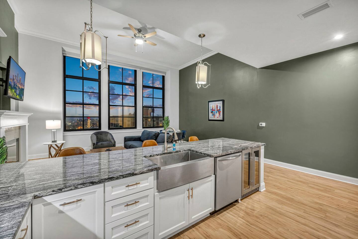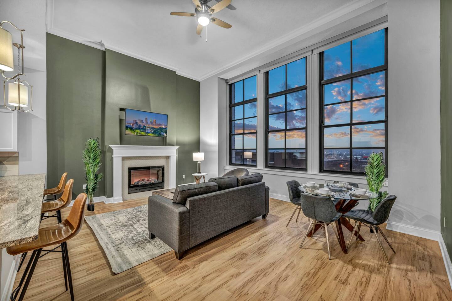 The luxurious condo in Playhouse Square is built to provide a premium getaway for visitors looking for the perfect stay. Its blend of modern elegance and historic charm in Cleveland’s most iconic neighborhood offers both relaxation and sophistication. Each room is enriched with soaring ceilings, crown moldings, and elegant finishes, accenting the timeless architecture with modern design. Every detail is well thought out, from fireplaces and a wine fridge to double ovens and comfortable furnishings. Two highly comfortable bedrooms plus a sofa bed provide all the space and rest you need after an exciting day of Cleveland adventures. Finally, you’ll enjoy access to top-tier building amenities including a fitness center, fast elevators, 24/7 security, and an on-site restaurant, all while being steps from theaters, dining, and sporting events. ★ LIVING ROOM ★ The living room is perfect for enjoying memorable moments after a day in the city. Relax on the sofa, stream your favorite shows, or simply enjoy the elegant setting. ✔ Queen-Size Sofa Bed ✔ Fireplace & Elegant Features ✔ 55" Smart TV with Streaming Apps ✔ Stylish Coffee Table ✔ Comfortable Seating ★ KITCHEN & DINING ★ Cook and dine in style with premium appliances and modern finishes, or enjoy the convenience of the on-site restaurant just downstairs. ✔ Double Ovens ✔ Wine Fridge ✔ Microwave ✔ Stove & Oven ✔ Toaster ✔ Blender ✔ Coffee Maker ✔ Refrigerator/Freezer ✔ Dishwasher ✔ Sink – Hot & Cold Water ✔ Glassware, Silverware, Pots & Pans ✔ Dining Table with Seating for 4 ✔ Kitchen Island with Seating for 3 ★ SLEEPING ARRANGEMENTS – 2 BEDROOMS ★ Designed for comfort and elegance, these bedrooms provide all the rest you need after a day exploring downtown Cleveland. ♛ Master Bedroom: King-Size Memory Foam Bed ♛ Bedroom 2: Queen-Size Memory Foam Bed ♛ Living Room: Queen-Size Sofa Bed ✔ Premium Pillows, Linens, and Sheets ✔ Spacious Closets with Hangers and Shelves ✔ Night Stands with Reading Lamps ✔ Smart TVs ★ BATHROOMS ★ The condo offers spa-like bathrooms stocked with essential toiletries and fresh towels for maximum comfort. ✔ Walk-In Shower ✔ Modern Vanity with Mirror ✔ Toilet ✔ Towels ✔ Hair Dryer ✔ Essential Toiletries ★ BUILDING AMENITIES ★ ✔ Parking Available ($20/day charged after booking is approved if requested, unlimited in/out access. Most parking garages in downtown charge $10-20 per 1 entry/day) ✔ 24/7 Security ✔ Fast Elevators ✔ Fully Equipped Gym ✔ On-Site Restaurant (Yours Truly Playhouse Square) ★ PRIME DOWNTOWN LOCATION ★ Situated directly in Playhouse Square, you’re steps away from Cleveland’s top attractions: ✔ Rocket Mortgage FieldHouse – 4 min walk ✔ Progressive Field – 6 min walk ✔ FirstEnergy Stadium – 10 min walk ✔ Huntington Convention Center – 9 min walk ✔ East 4th Street Dining – 4 min walk ✔ Rock & Roll Hall of Fame – 12 min walk ✔ Public Square Park – 7 min walk ✔ Lake Erie Waterfront & Pier – 12 min walk Nearby Dining: Butcher and the Brewer (4 min walk), Mabel’s BBQ (6 min walk), TownHall (7 min drive). Nearby Parks: Perk Park (2 min walk), Mall B (6 min walk), Edgewater Park & Beach (10 min drive). Medical Facilities: Cleveland Clinic (15 min drive), University Hospitals (15 min drive), MetroHealth (10 min drive). Universities: Cleveland State University (12 min walk), Case Western Reserve (15 min drive). This property combines historic luxury with modern comfort, making it the ideal base for business, leisure, or convention travel. Whether you’re here for world-class dining, theater, sports, or just to explore the city, you’ll find yourself at the center of it all.