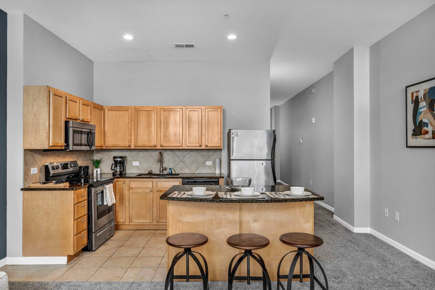 ★ ADDITIONAL ACCOMMODATION ★ Traveling in a larger group, or your preferred dates are already taken? You'll be happy to know that we offer additional units in the building with an option of renting multiple together. Please browse our host profile for the complete list of gorgeous listings. ★ CLEANING & SANITIZATION ★ Health, safety, and well-being of our guests are of utmost importance. For this reason, we use a thorough cleaning process after each check-out. ★ GUEST SCREENING & DAMAGE PROTECTION ★ The Primary Reservation holder must provide a valid Government-issued ID prior to check-in. ★ BUILDING & CONDO SECURITY MEASURES ★ • Minut noise detectors are located in the apartment and monitor noise levels. • Surveillance cameras monitor building common areas (never inside the unit). • 24/7 building security. ★ PETS ALLOWED ★ We love those little (and not so little) furry bundles of joy. We charge a $25 per night, $100 per week, or $300 per month pet cleaning fee (per pet). This fee will be charged via Airbnb Resolution Center if not collected at booking. ✔ Maximum of 2 pets, must be well trained. ✔ No aggressive breeds or pit bulls permitted. ★ NO SMOKING INSIDE ★ Please refrain from smoking inside the home. 🚭 Any evidence of smoking will result in fees for odor removal and furniture cleaning and immediate eviction without refund. ★ NO PARTIES/EVENTS ★ We kindly ask you to treat our home as your own to preserve its pristine condition for future guests and your return visits. Any unauthorized parties or events will result in immediate eviction without refund. ★ ADDITIONAL FEES ★ • Early Check-In: $25 (2 PM) or $50 (12 PM), subject to host approval and cleaner availability. • Late Check-Out: $25 (12 PM), subject to host approval and cleaner availability. • Lost Fob/Card: $150 replacement fee. Fobs/cards must be returned to the lockbox upon checkout. ★ AMENITY DISCLAIMER ★ • Amenities outside of the apartment (gym, garage, etc.) are managed by the building and subject to maintenance outside of our control. • Temporary amenity closures do not warrant a refund. Please inquire about amenity status before booking. ★ PARKING INFORMATION ★ • $20/day for unlimited in/out access for 1 car. Please message us to request a parking pass and we will send a payment request. • Parking garage is managed by an independent company across the building. • Garage clearance: 6'-3". ★ FIREPLACE NOTICE ★ The fireplace is for display only and is not functional.