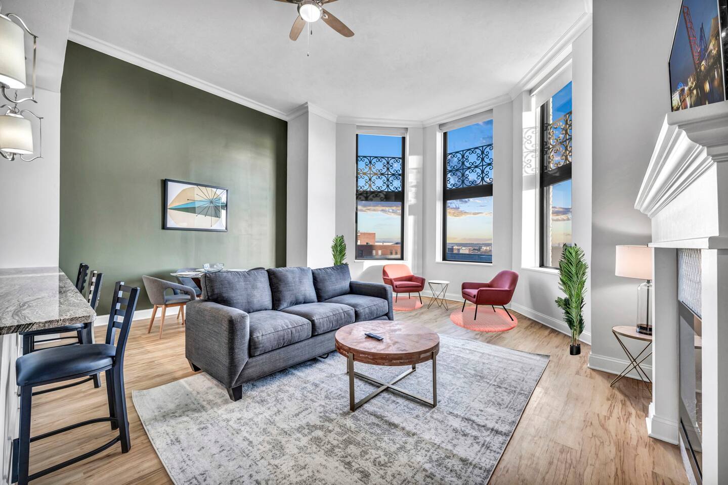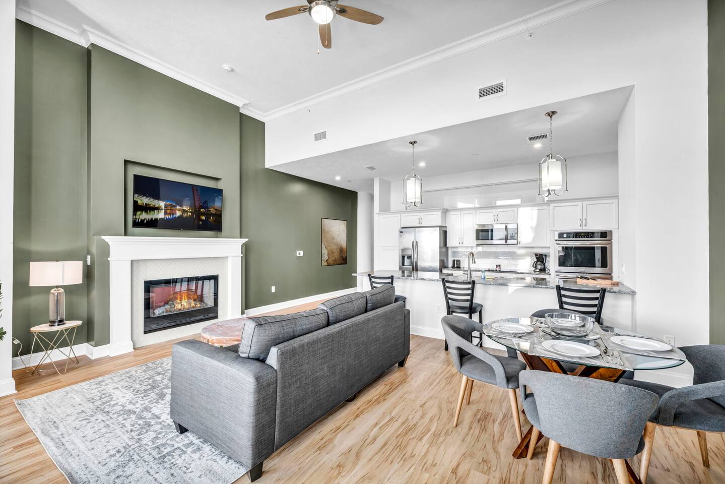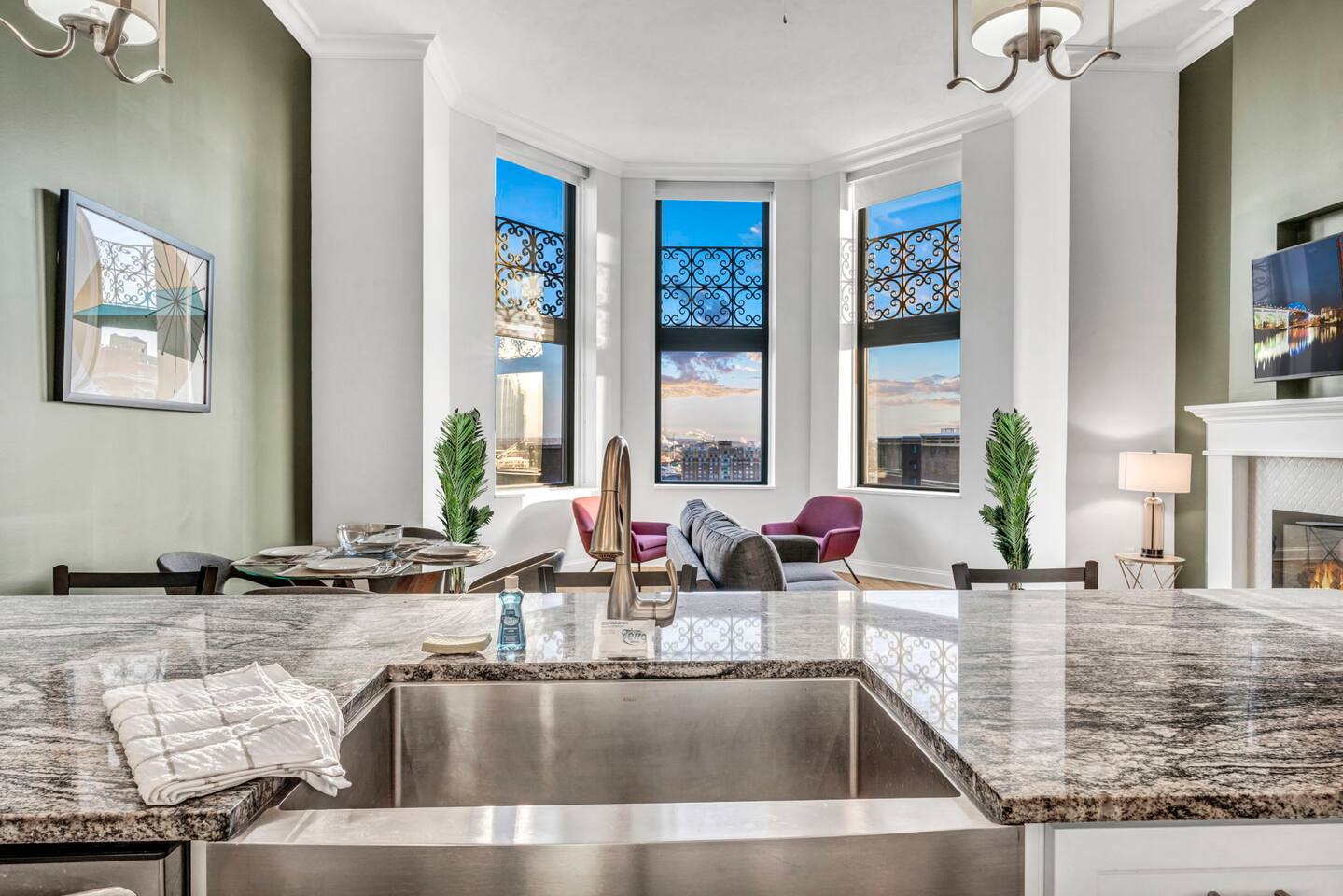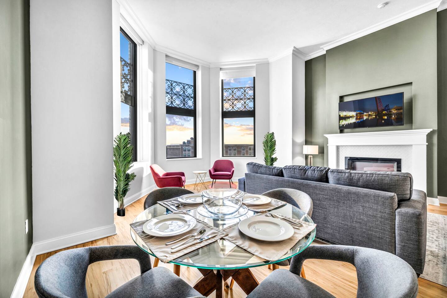 ★ ADDITIONAL ACCOMMODATION ★ Traveling in a larger group, or your preferred dates are already taken? You'll be happy to know that we offer additional units in the building with an option of renting multiple together. Please browse our host profile for the complete list of gorgeous listings. ★ CLEANING & SANITIZATION ★ Health, safety, and well-being of our guests are of utmost importance. For this reason, we use a thorough cleaning process after each check-out. ★ GUEST SCREENING & DAMAGE PROTECTION ★ The Primary Reservation holder must provide a valid Government-issued ID prior to check-in. ★ BUILDING & CONDO SECURITY MEASURES ★ • Minut noise detectors are located in the apartment and monitor noise levels. • Surveillance cameras monitor building common areas (never inside the unit). • 24/7 building security. ★ PETS ALLOWED ★ We love those little (and not so little) furry bundles of joy. We charge a $25 per night, $100 per week, or $300 per month pet cleaning fee (per pet). This fee will be charged via Airbnb Resolution Center if not collected at booking. ✔ Maximum of 2 pets, must be well trained. ✔ No aggressive breeds or pit bulls permitted. ★ NO SMOKING INSIDE ★ Please refrain from smoking inside the home. 🚭 Any evidence of smoking will result in fees for odor removal and furniture cleaning and immediate eviction without refund. ★ NO PARTIES/EVENTS ★ We kindly ask you to treat our home as your own to preserve its pristine condition for future guests and your return visits. Any unauthorized parties or events will result in immediate eviction without refund. ★ ADDITIONAL FEES ★ • Early Check-In: $25 (2 PM) or $50 (12 PM), subject to host approval and cleaner availability. • Late Check-Out: $25 (12 PM), subject to host approval and cleaner availability. • Lost Fob/Card: $150 replacement fee. Fobs/cards must be returned to the lockbox upon checkout. ★ AMENITY DISCLAIMER ★ • Amenities outside of the apartment (gym, garage, etc.) are managed by the building and subject to maintenance outside of our control. • Temporary amenity closures do not warrant a refund. Please inquire about amenity status before booking. ★ PARKING INFORMATION ★ • $20/day for unlimited in/out access for 1 car. Please message us to request a parking pass and we will send a payment request. • Parking garage is managed by an independent company across the building. • Garage clearance: 6'-3". ★ FIREPLACE NOTICE ★ The fireplace is for display only and is not functional.