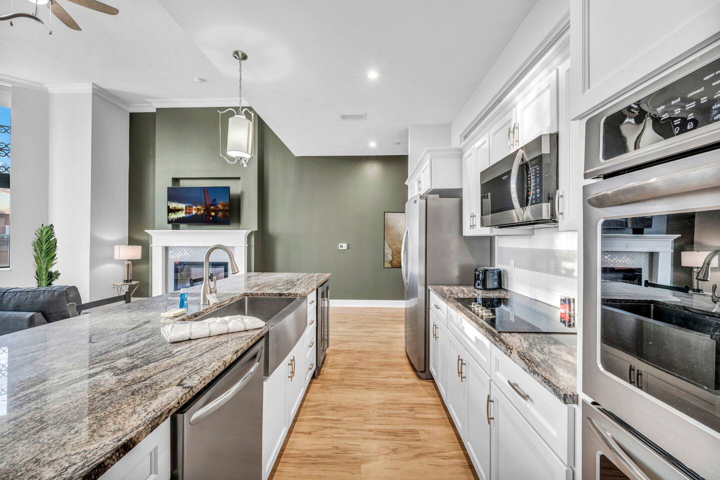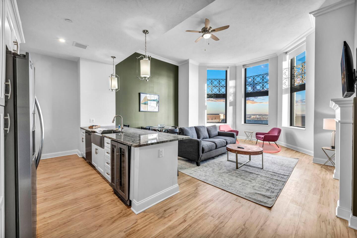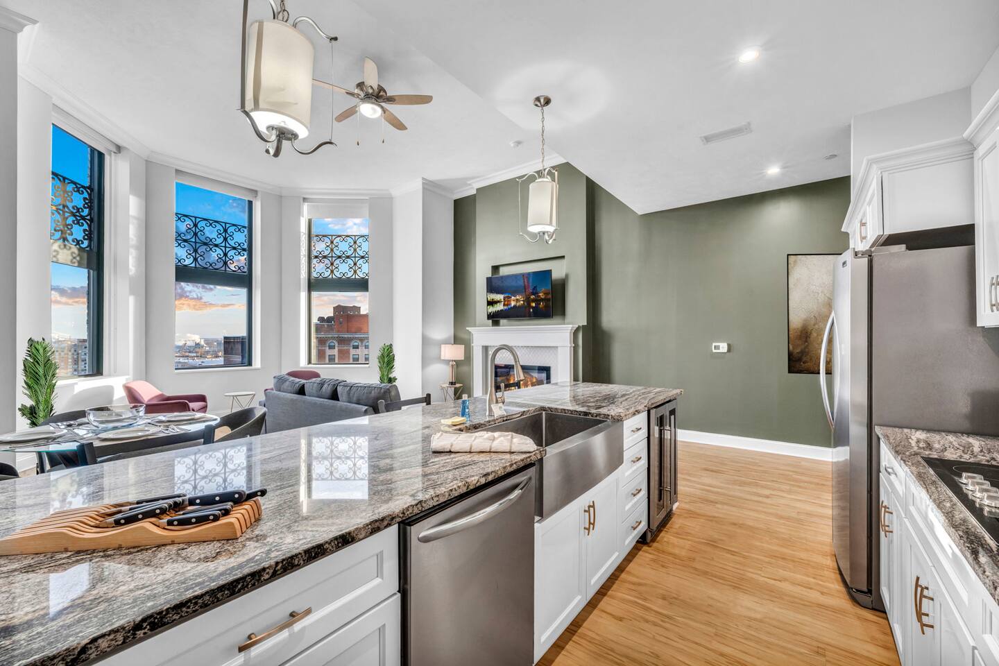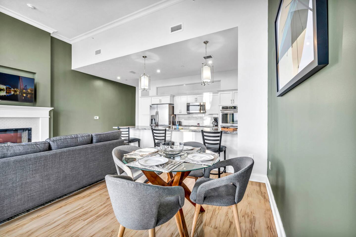 ★ ADDITIONAL ACCOMMODATION ★ Traveling in a larger group, or your preferred dates are already taken? You'll be happy to know that we offer additional units in the building with an option of renting multiple together. Please browse our host profile for the complete list of gorgeous listings. ★ CLEANING & SANITIZATION ★ Health, safety, and well-being of our guests are of utmost importance. For this reason, we use a thorough cleaning process after each check-out. ★ GUEST SCREENING & DAMAGE PROTECTION ★ The Primary Reservation holder must provide a valid Government-issued ID prior to check-in. ★ BUILDING & CONDO SECURITY MEASURES ★ • Minut noise detectors are located in the apartment and monitor noise levels. • Surveillance cameras monitor building common areas (never inside the unit). • 24/7 building security. ★ PETS ALLOWED ★ We love those little (and not so little) furry bundles of joy. We charge a $25 per night, $100 per week, or $300 per month pet cleaning fee (per pet). This fee will be charged via Airbnb Resolution Center if not collected at booking. ✔ Maximum of 2 pets, must be well trained. ✔ No aggressive breeds or pit bulls permitted. ★ NO SMOKING INSIDE ★ Please refrain from smoking inside the home. 🚭 Any evidence of smoking will result in fees for odor removal and furniture cleaning and immediate eviction without refund. ★ NO PARTIES/EVENTS ★ We kindly ask you to treat our home as your own to preserve its pristine condition for future guests and your return visits. Any unauthorized parties or events will result in immediate eviction without refund. ★ ADDITIONAL FEES ★ • Early Check-In: $25 (2 PM) or $50 (12 PM), subject to host approval and cleaner availability. • Late Check-Out: $25 (12 PM), subject to host approval and cleaner availability. • Lost Fob/Card: $150 replacement fee. Fobs/cards must be returned to the lockbox upon checkout. ★ AMENITY DISCLAIMER ★ • Amenities outside of the apartment (gym, garage, etc.) are managed by the building and subject to maintenance outside of our control. • Temporary amenity closures do not warrant a refund. Please inquire about amenity status before booking. ★ PARKING INFORMATION ★ • $20/day for unlimited in/out access for 1 car. Please message us to request a parking pass and we will send a payment request. • Parking garage is managed by an independent company across the building. • Garage clearance: 6'-3". ★ FIREPLACE NOTICE ★ The fireplace is for display only and is not functional.