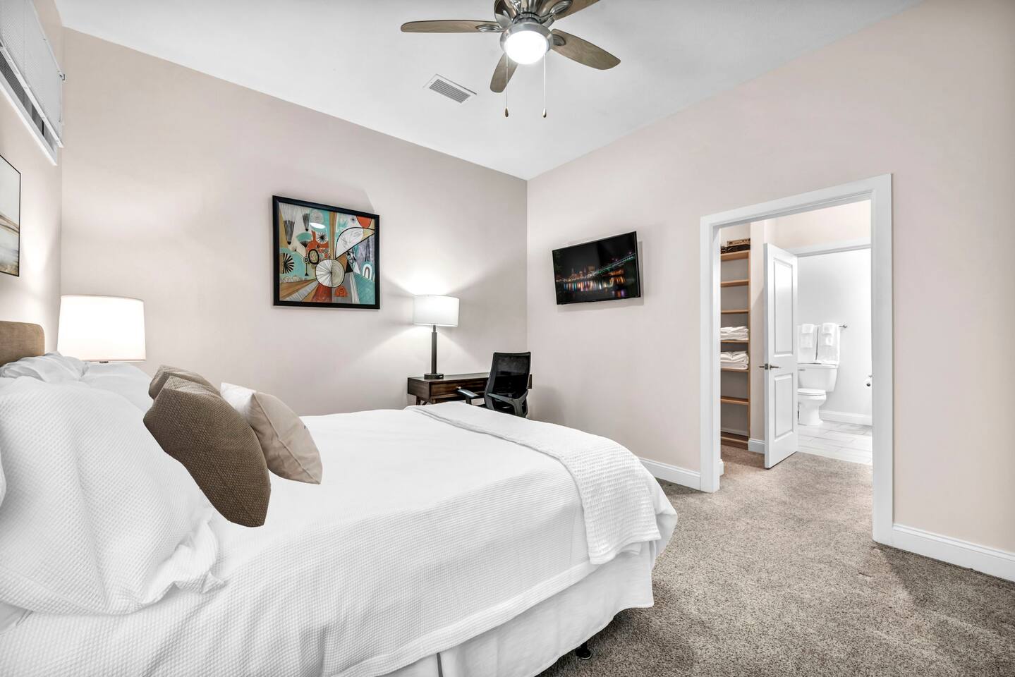 The home is nestled on Euclid Avenue in Downtown Cleveland, Ohio, right in the heart of the city’s vibrant arts and entertainment district. This prime location places you just steps away from world-class dining, shopping, sports, and cultural attractions. One of the most notable landmarks nearby is Playhouse Square, the largest performing arts center outside of New York City. With its dazzling theater marquees and year-round shows, it’s a must-see for visitors. Downtown Cleveland is also home to Public Square, a lively central plaza with green spaces, fountains, and seasonal events. Sports fans will love being close to Progressive Field, Rocket Mortgage FieldHouse, and FirstEnergy Stadium. Food lovers can explore Cleveland’s booming culinary scene, from trendy spots in the East 4th Street Entertainment District to classic eateries at the historic West Side Market just across the river. Here’s a detailed list of some places of interest you’ll want to visit during your stay: ✔ Playhouse Square – 2 min walk ✔ East 4th Street Dining District – 5 min walk ✔ Public Square – 7 min walk ✔ Progressive Field (Cleveland Guardians) – 10 min walk / 3 min drive ✔ Rocket Mortgage FieldHouse (Cavaliers, concerts) – 12 min walk / 3 min drive ✔ FirstEnergy Stadium (Cleveland Browns) – 20 min walk / 7 min drive ✔ Rock & Roll Hall of Fame – 20 min walk / 7 min drive ✔ Great Lakes Science Center – 20 min walk / 7 min drive ✔ Cleveland State University – 12 min walk / 5 min drive ✔ Cleveland Clinic Main Campus – 10 min drive ✔ University Circle Museums & Cleveland Museum of Art – 12 min drive ✔ West Side Market & Ohio City – 12 min drive ✔ Edgewater Park & Beach – 15 min drive ✔ Cleveland Hopkins International Airport – 18 min drive ***Distance times are approximate. Walking times are based on average downtown routes.