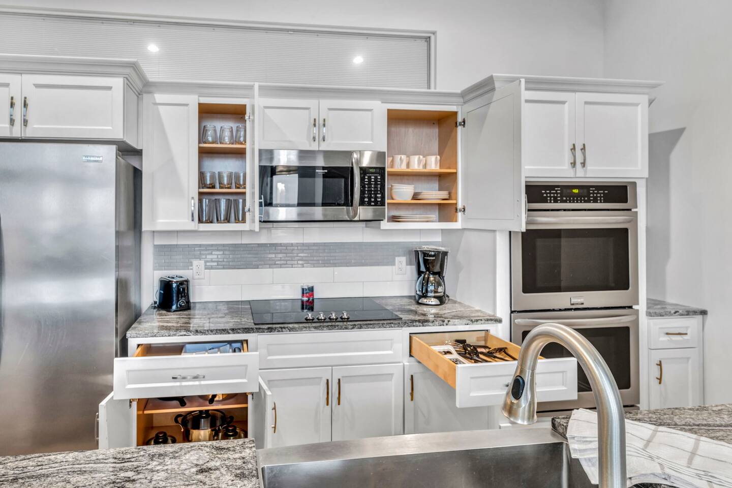The luxurious condo in Playhouse Square is built to provide a premium getaway for visitors looking for the perfect stay. Its blend of modern elegance and historic charm in Cleveland’s most iconic neighborhood offers both relaxation and sophistication. Each room is enriched with soaring ceilings, crown moldings, and elegant finishes, accenting the timeless architecture with modern design. Every detail is well thought out, from fireplaces and a wine fridge to double ovens and comfortable furnishings. Two highly comfortable bedrooms plus a sofa bed provide all the space and rest you need after an exciting day of Cleveland adventures. Finally, you’ll enjoy access to top-tier building amenities including a fitness center, fast elevators, 24/7 security, and an on-site restaurant, all while being steps from theaters, dining, and sporting events. ★ LIVING ROOM ★ The living room is perfect for enjoying memorable moments after a day in the city. Relax on the sofa, stream your favorite shows, or simply enjoy the elegant setting. ✔ Queen-Size Sofa Bed ✔ Fireplace & Elegant Features ✔ 55" Smart TV with Streaming Apps ✔ Stylish Coffee Table ✔ Comfortable Seating ★ KITCHEN & DINING ★ Cook and dine in style with premium appliances and modern finishes, or enjoy the convenience of the on-site restaurant just downstairs. ✔ Double Ovens ✔ Wine Fridge ✔ Microwave ✔ Stove & Oven ✔ Toaster ✔ Blender ✔ Coffee Maker ✔ Refrigerator/Freezer ✔ Dishwasher ✔ Sink – Hot & Cold Water ✔ Glassware, Silverware, Pots & Pans ✔ Dining Table with Seating for 4 ✔ Kitchen Island with Seating for 3 ★ SLEEPING ARRANGEMENTS – 2 BEDROOMS ★ Designed for comfort and elegance, these bedrooms provide all the rest you need after a day exploring downtown Cleveland. ♛ Master Bedroom: King-Size Memory Foam Bed ♛ Bedroom 2: Queen-Size Memory Foam Bed ♛ Living Room: Queen-Size Sofa Bed ✔ Premium Pillows, Linens, and Sheets ✔ Spacious Closets with Hangers and Shelves ✔ Night Stands with Reading Lamps ✔ Smart TVs ★ BATHROOMS ★ The condo offers spa-like bathrooms stocked with essential toiletries and fresh towels for maximum comfort. ✔ Walk-In Shower ✔ Modern Vanity with Mirror ✔ Toilet ✔ Towels ✔ Hair Dryer ✔ Essential Toiletries ★ BUILDING AMENITIES ★ ✔ Parking Available ($20day charged after booking is approved if requested, unlimited in/out access. Most parking garages in downtown charge $10-20 per 1 entry/day) ✔ 24/7 Security ✔ Fast Elevators ✔ Fully Equipped Gym ✔ On-Site Restaurant (Yours Truly Playhouse Square) ★ PRIME DOWNTOWN LOCATION ★ Situated directly in Playhouse Square, you’re steps away from Cleveland’s top attractions: ✔ Rocket Mortgage FieldHouse – 4 min walk ✔ Progressive Field – 6 min walk ✔ FirstEnergy Stadium – 10 min walk ✔ Huntington Convention Center – 9 min walk ✔ East 4th Street Dining – 4 min walk ✔ Rock & Roll Hall of Fame – 12 min walk ✔ Public Square Park – 7 min walk ✔ Lake Erie Waterfront & Pier – 12 min walk Nearby Dining: Butcher and the Brewer (4 min walk), Mabel’s BBQ (6 min walk), TownHall (7 min drive). Nearby Parks: Perk Park (2 min walk), Mall B (6 min walk), Edgewater Park & Beach (10 min drive). Medical Facilities: Cleveland Clinic (15 min drive), University Hospitals (15 min drive), MetroHealth (10 min drive). Universities: Cleveland State University (12 min walk), Case Western Reserve (15 min drive). This property combines historic luxury with modern comfort, making it the ideal base for business, leisure, or convention travel. Whether you’re here for world-class dining, theater, sports, or just to explore the city, you’ll find yourself at the center of it all.