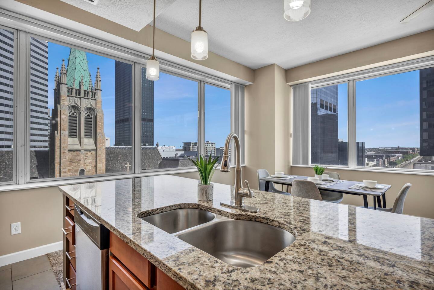 ★ ADDITIONAL ACCOMMODATION ★ Traveling in a larger group, or your preferred dates are already taken? You'll be happy to know that we offer additional units in the building with an option of renting multiple together. Please browse our host profile for the complete list of gorgeous listings. ★ CLEANING & SANITIZATION ★ Health, safety, and well-being of our guests are of utmost importance. For this reason, we use a thorough cleaning process after each check-out. ★ GUEST SCREENING & DAMAGE PROTECTION ★ The Primary Reservation holder must provide a valid Government-issued ID prior to check-in. ★ BUILDING & CONDO SECURITY MEASURES ★ • Minut noise detectors are located in the apartment and monitor noise levels. • Surveillance cameras monitor building common areas (never inside the unit). • 24/7 building security. ★ PETS ALLOWED ★ We love those little (and not so little) furry bundles of joy. We charge a $25 per night, $100 per week, or $300 per month pet cleaning fee (per pet). This fee will be charged via Airbnb Resolution Center if not collected at booking. ✔ Maximum of 2 pets, must be well trained. ✔ No aggressive breeds or pit bulls permitted. ★ NO SMOKING INSIDE ★ Please refrain from smoking inside the home. 🚭 Any evidence of smoking will result in fees for odor removal and furniture cleaning and immediate eviction without refund. ★ NO PARTIES/EVENTS ★ We kindly ask you to treat our home as your own to preserve its pristine condition for future guests and your return visits. Any unauthorized parties or events will result in immediate eviction without refund. ★ ADDITIONAL FEES ★ • Early Check-In: $25 (2 PM) or $50 (12 PM), subject to host approval and cleaner availability. • Late Check-Out: $25 (12 PM), subject to host approval and cleaner availability. • Lost Fob/Card: $150 replacement fee. Fobs/cards must be returned to the lockbox upon checkout. ★ AMENITY DISCLAIMER ★ • Amenities outside of the apartment (gym, garage, etc.) are managed by the building and subject to maintenance outside of our control. • Temporary amenity closures do not warrant a refund. Please inquire about amenity status before booking. ★ PARKING INFORMATION ★ • $20/day for unlimited in/out access for 1 car. Please message us to request a parking pass and we will send a payment request. • Parking garage is managed by an independent company across the building. • Garage clearance: 6'-3". ★ FIREPLACE NOTICE ★ The fireplace is for display only and is not functional.
