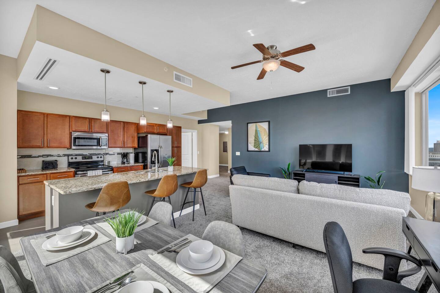 Stay at one of Cleveland’s premier luxury residences, a condo crafted for guests who value elegance, comfort, and convenience. With a Walk Score of 98/100, you’re only moments from the city’s best dining, nightlife, and attractions—then retreat to your private oasis to unwind in style. ✔️ Luxury 2BR/2Bath Condo ✔️ Open-Concept Living ✔️ Full Modern Kitchen ✔️ Smart TVs ✔️ High-Speed Wi-Fi ✔️ Workspace ✔️ Washer/Dryer ✔️ Parking Available $ ✔️ 24/7 Security ✔️ Fitness Center See more below!