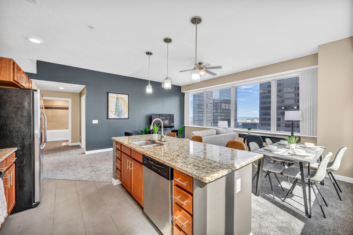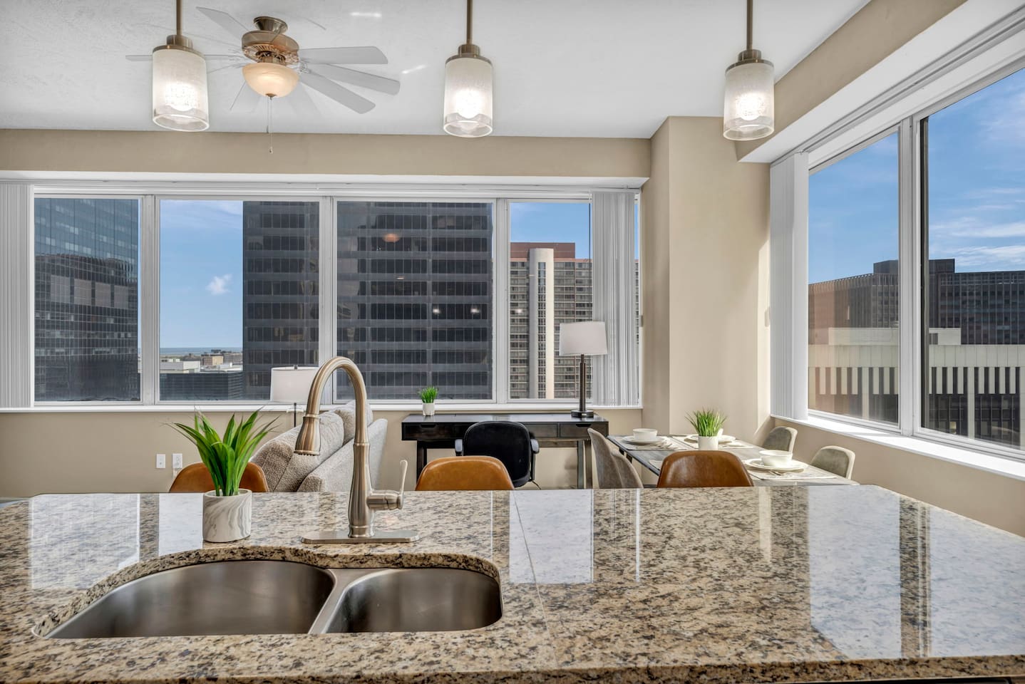 ★ ADDITIONAL ACCOMMODATION ★ Traveling in a larger group, or your preferred dates are already taken? You'll be happy to know that we offer additional units in the building with an option of renting multiple together. Please browse our host profile for the complete list of gorgeous listings. ★ CLEANING & SANITIZATION ★ Health, safety, and well-being of our guests are of utmost importance. For this reason, we use a thorough cleaning process after each check-out. ★ GUEST SCREENING & DAMAGE PROTECTION ★ The Primary Reservation holder must provide a valid Government-issued ID prior to check-in. ★ BUILDING & CONDO SECURITY MEASURES ★ • Minut noise detectors are located in the apartment and monitor noise levels. • Surveillance cameras monitor building common areas (never inside the unit). • 24/7 building security. ★ PETS ALLOWED ★ We love those little (and not so little) furry bundles of joy. We charge a $25 per night, $100 per week, or $300 per month pet cleaning fee (per pet). This fee will be charged via Airbnb Resolution Center if not collected at booking. ✔ Maximum of 2 pets, must be well trained. ✔ No aggressive breeds or pit bulls permitted. ★ NO SMOKING INSIDE ★ Please refrain from smoking inside the home. 🚭 Any evidence of smoking will result in fees for odor removal and furniture cleaning and immediate eviction without refund. ★ NO PARTIES/EVENTS ★ We kindly ask you to treat our home as your own to preserve its pristine condition for future guests and your return visits. Any unauthorized parties or events will result in immediate eviction without refund. ★ ADDITIONAL FEES ★ • Early Check-In: $25 (2 PM) or $50 (12 PM), subject to host approval and cleaner availability. • Late Check-Out: $25 (12 PM), subject to host approval and cleaner availability. • Lost Fob/Card: $150 replacement fee. Fobs/cards must be returned to the lockbox upon checkout. ★ AMENITY DISCLAIMER ★ • Amenities outside of the apartment (gym, garage, etc.) are managed by the building and subject to maintenance outside of our control. • Temporary amenity closures do not warrant a refund. Please inquire about amenity status before booking. ★ PARKING INFORMATION ★ • $20/day for unlimited in/out access for 1 car. Please message us to request a parking pass and we will send a payment request. • Parking garage is managed by an independent company across the building. • Garage clearance: 6'-3". ★ FIREPLACE NOTICE ★ The fireplace is for display only and is not functional.