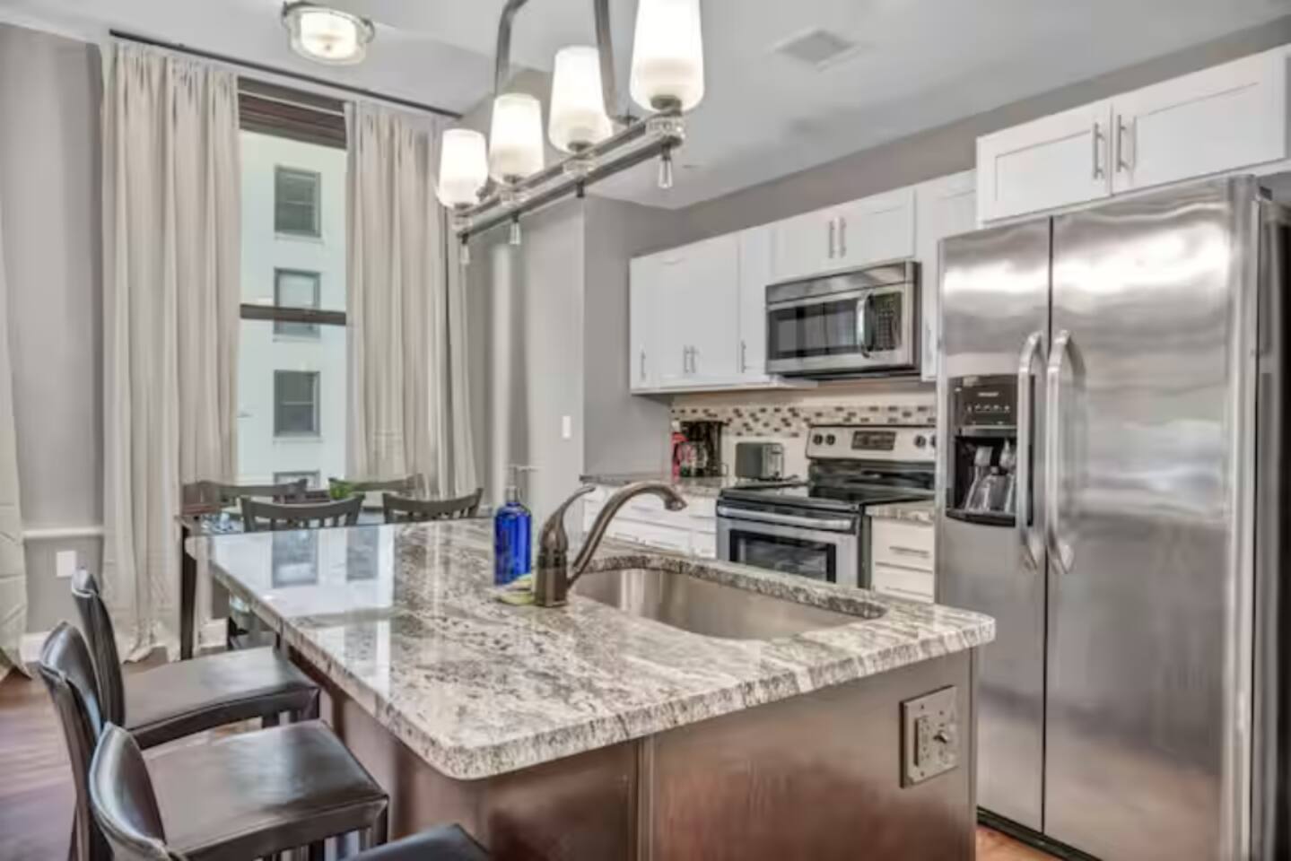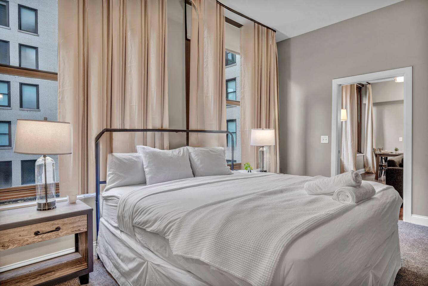 ★ ADDITIONAL ACCOMMODATION ★ Traveling in a larger group, or your preferred dates are already taken? You'll be happy to know that we offer additional units in the building with an option of renting multiple together. Please browse our host profile for the complete list of gorgeous listings. ★ CLEANING & SANITIZATION ★ Health, safety, and well-being of our guests are of utmost importance. For this reason, we use a thorough cleaning process after each check-out. ★ GUEST SCREENING & DAMAGE PROTECTION ★ The Primary Reservation holder must provide a valid Government-issued ID prior to check-in. ★ BUILDING & CONDO SECURITY MEASURES ★ • Minut noise detectors are located in the apartment and monitor noise levels. • Surveillance cameras monitor building common areas (never inside the unit). • 24/7 building security. ★ PETS ALLOWED ★ We love those little (and not so little) furry bundles of joy. We charge a $25 per night, $100 per week, or $300 per month pet cleaning fee (per pet). This fee will be charged via Airbnb Resolution Center if not collected at booking. ✔ Maximum of 2 pets, must be well trained. ✔ No aggressive breeds or pit bulls permitted. ★ NO SMOKING INSIDE ★ Please refrain from smoking inside the home. 🚭 Any evidence of smoking will result in fees for odor removal and furniture cleaning and immediate eviction without refund. ★ NO PARTIES/EVENTS ★ We kindly ask you to treat our home as your own to preserve its pristine condition for future guests and your return visits. Any unauthorized parties or events will result in immediate eviction without refund. ★ ADDITIONAL FEES ★ • Early Check-In: $25 (2 PM) or $50 (12 PM), subject to host approval and cleaner availability. • Late Check-Out: $25 (12 PM), subject to host approval and cleaner availability. • Lost Fob/Card: $150 replacement fee. Fobs/cards must be returned to the lockbox upon checkout. ★ AMENITY DISCLAIMER ★ • Amenities outside of the apartment (gym, garage, etc.) are managed by the building and subject to maintenance outside of our control. • Temporary amenity closures do not warrant a refund. Please inquire about amenity status before booking. ★ PARKING INFORMATION ★ • $20/day for unlimited in/out access for 1 car. Please message us to request a parking pass and we will send a payment request. • Parking garage is managed by an independent company across the building. • Garage clearance: 6'-3". ★ FIREPLACE NOTICE ★ The fireplace is for display only and is not functional.