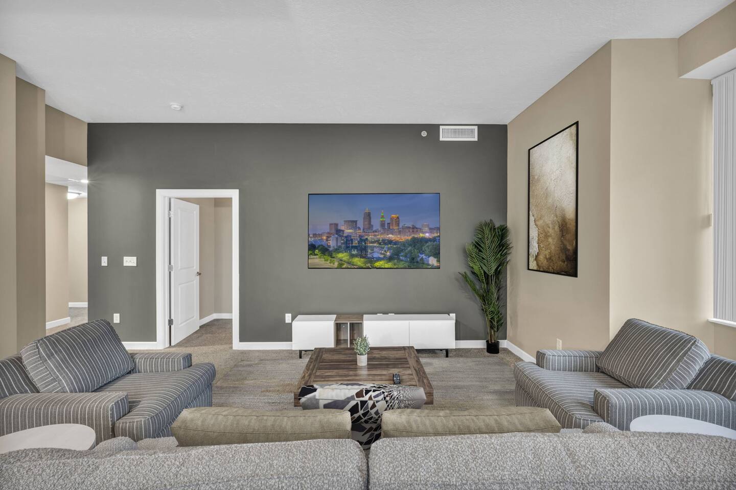 Stay at one of Cleveland’s premier luxury residences, a condo crafted for guests who value elegance, comfort, and convenience. With a Walk Score of 98/100, you’re only moments from the city’s best dining, nightlife, and attractions—then retreat to your private oasis to unwind in style. ✔️ Luxury 2BR/2Bath Condo ✔️ Open-Concept Living ✔️ Full Modern Kitchen ✔️ Smart TVs ✔️ High-Speed Wi-Fi ✔️ Workspace ✔️ Washer/Dryer ✔️ Parking available $ ✔️ 24/7 Security ✔️ Fitness Center See more below!
