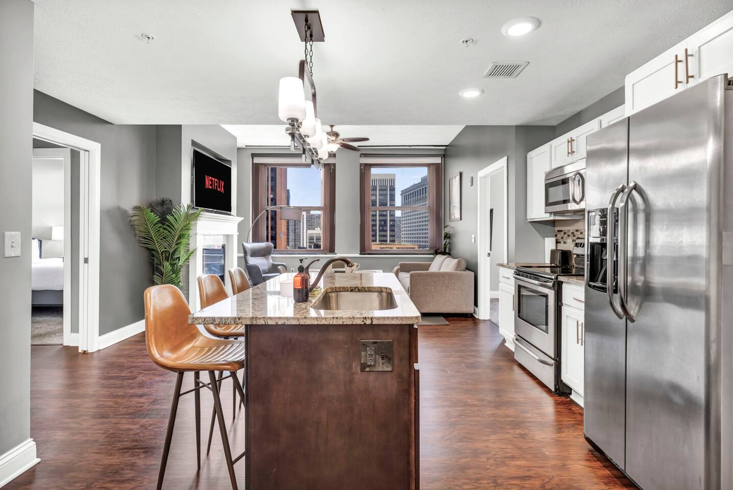 Stay at one of Cleveland’s premier luxury residences, a condo crafted for guests who value elegance, comfort, and convenience. With a Walk Score of 96/100, you’re only moments from the city’s best dining, nightlife, and attractions—then retreat to your private oasis to unwind in style. ✔️ Luxury 2BR/2Bath Condo ✔️ Open-Concept Living ✔️ Full Modern Kitchen ✔️ Smart TVs ✔️ High-Speed Wi-Fi ✔️ Workspace ✔️ Washer/Dryer ✔️ Parking Available $ ✔️ 24/7 Security ✔️ Fitness Center See more below!