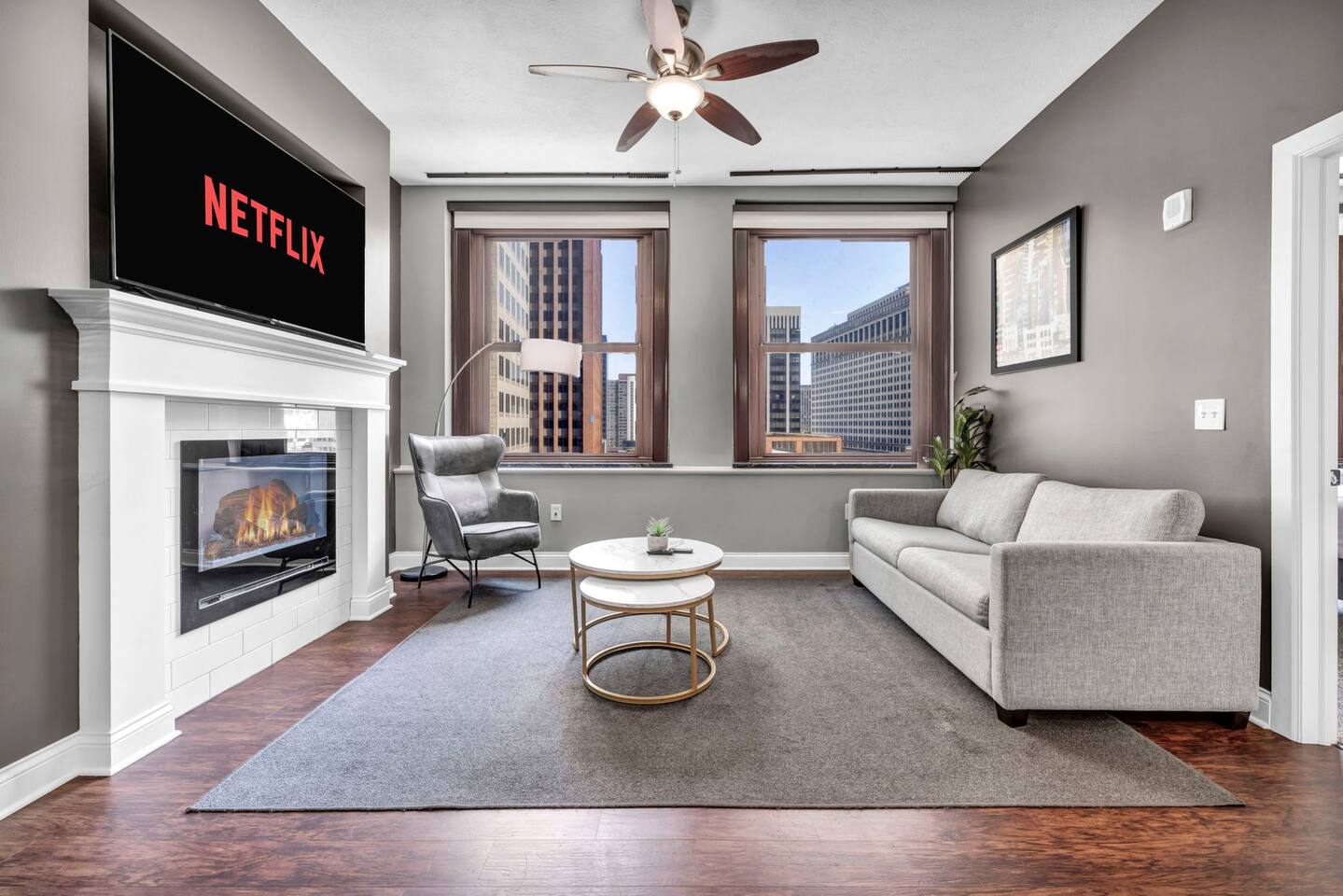★ ADDITIONAL ACCOMMODATION ★ Traveling in a larger group, or your preferred dates are already taken? You'll be happy to know that we offer additional units in the building with an option of renting multiple together. Please browse our host profile for the complete list of gorgeous listings. ★ CLEANING & SANITIZATION ★ Health, safety, and well-being of our guests are of utmost importance. For this reason, we use a thorough cleaning process after each check-out. ★ GUEST SCREENING & DAMAGE PROTECTION ★ The Primary Reservation holder must provide a valid Government-issued ID prior to check-in. ★ BUILDING & CONDO SECURITY MEASURES ★ • Minut noise detectors are located in the apartment and monitor noise levels. • Surveillance cameras monitor building common areas (never inside the unit). • 24/7 building security. ★ PETS ALLOWED ★ We love those little (and not so little) furry bundles of joy. We charge a $25 per night, $100 per week, or $300 per month pet cleaning fee (per pet). This fee will be charged via Airbnb Resolution Center if not collected at booking. ✔ Maximum of 2 pets, must be well trained. ✔ No aggressive breeds or pit bulls permitted. ★ NO SMOKING INSIDE ★ Please refrain from smoking inside the home. 🚭 Any evidence of smoking will result in fees for odor removal and furniture cleaning and immediate eviction without refund. ★ NO PARTIES/EVENTS ★ We kindly ask you to treat our home as your own to preserve its pristine condition for future guests and your return visits. Any unauthorized parties or events will result in immediate eviction without refund. ★ ADDITIONAL FEES ★ • Early Check-In: $25 (2 PM) or $50 (12 PM), subject to host approval and cleaner availability. • Late Check-Out: $25 (12 PM), subject to host approval and cleaner availability. • Lost Fob/Card: $150 replacement fee. Fobs/cards must be returned to the lockbox upon checkout. ★ AMENITY DISCLAIMER ★ • Amenities outside of the apartment (gym, garage, etc.) are managed by the building and subject to maintenance outside of our control. • Temporary amenity closures do not warrant a refund. Please inquire about amenity status before booking. ★ PARKING INFORMATION ★ • $20/day for unlimited in/out access for 1 car. Please message us to request a parking pass and we will send a payment request. • Parking garage is managed by an independent company across the building. • Garage clearance: 6'-3". ★ FIREPLACE NOTICE ★ The fireplace is for display only and is not functional