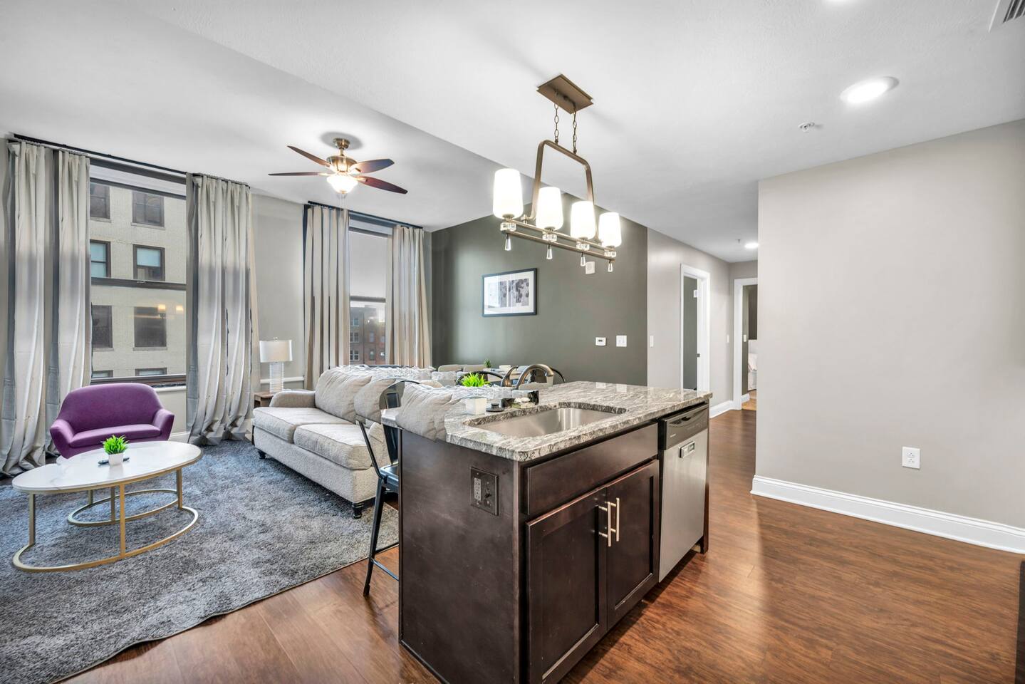 ★ ADDITIONAL ACCOMMODATION ★ Traveling in a larger group, or your preferred dates are already taken? You'll be happy to know that we offer additional units in the building with an option of renting multiple together. Please browse our host profile for the complete list of gorgeous listings. ★ CLEANING & SANITIZATION ★ Health, safety, and well-being of our guests are of utmost importance. For this reason, we use a thorough cleaning process after each check-out. ★ GUEST SCREENING & DAMAGE PROTECTION ★ The Primary Reservation holder must provide a valid Government-issued ID prior to check-in. ★ BUILDING & CONDO SECURITY MEASURES ★ • Minut noise detectors are located in the apartment and monitor noise levels. • Surveillance cameras monitor building common areas (never inside the unit). • 24/7 building security. ★ PETS ALLOWED ★ We love those little (and not so little) furry bundles of joy. We charge a $25 per night, $100 per week, or $300 per month pet cleaning fee (per pet). This fee will be charged via Airbnb Resolution Center if not collected at booking. ✔ Maximum of 2 pets, must be well trained. ✔ No aggressive breeds or pit bulls permitted. ★ NO SMOKING INSIDE ★ Please refrain from smoking inside the home. 🚭 Any evidence of smoking will result in fees for odor removal and furniture cleaning and immediate eviction without refund. ★ NO PARTIES/EVENTS ★ We kindly ask you to treat our home as your own to preserve its pristine condition for future guests and your return visits. Any unauthorized parties or events will result in immediate eviction without refund. ★ ADDITIONAL FEES ★ • Early Check-In: $25 (2 PM) or $50 (12 PM), subject to host approval and cleaner availability. • Late Check-Out: $25 (12 PM), subject to host approval and cleaner availability. • Lost Fob/Card: $150 replacement fee. Fobs/cards must be returned to the lockbox upon checkout. ★ AMENITY DISCLAIMER ★ • Amenities outside of the apartment (gym, garage, etc.) are managed by the building and subject to maintenance outside of our control. • Temporary amenity closures do not warrant a refund. Please inquire about amenity status before booking. ★ PARKING INFORMATION ★ • $20/day for unlimited in/out access for 1 car. Please message us to request a parking pass and we will send a payment request. • Parking garage is managed by an independent company across the building. • Garage clearance: 6'-3". ★ FIREPLACE NOTICE ★ The fireplace is for display only and is not functional
