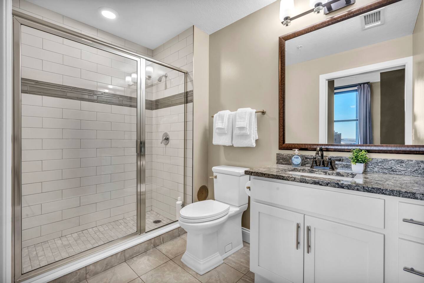 The luxurious condo is built to provide a premium getaway for visitors seeking the perfect stay. Its blend of modern elegance and upscale comfort in one of downtown Cleveland’s most desirable neighborhoods offers both relaxation and sophistication. Each room features high ceilings, stylish finishes, and carefully chosen décor that elevate the space with a contemporary yet timeless feel. Every detail is designed for comfort, from a fully equipped kitchen with modern appliances to cozy bedrooms with plush memory foam mattresses. Two highly comfortable bedrooms plus a sofa bed provide plenty of space for rest and relaxation after an exciting day exploring Cleveland. Finally, you’ll enjoy access to top-tier building amenities including a fitness center, fast elevators, 24/7 security, and nearby parking, all while being steps from restaurants, theaters, and sporting events. ★ LIVING ROOM ★ The living room is perfect for unwinding after a day in the city. Lounge on the sofa, stream your favorite shows, or enjoy the stylish setting. ✔ Queen-Size Sofa Bed ✔ Elegant Décor & Finishes ✔ 55" Smart TV with Streaming Apps ✔ Stylish Coffee Table ✔ Comfortable Seating ★ KITCHEN & DINING ★ Cook and dine in style with a chef-inspired kitchen, or take advantage of the incredible dining options just steps away. ✔ Stove & Oven ✔ Microwave ✔ Coffee Maker ✔ Toaster ✔ Blender ✔ Refrigerator/Freezer ✔ Dishwasher ✔ Sink – Hot & Cold Water ✔ Glassware, Silverware, Pots & Pans ✔ Washer/Dryer ✔ Dining Table with Seating for 4 ✔ Kitchen Island with Seating for 3 ★ SLEEPING ARRANGEMENTS – 2 BEDROOMS ★ Each bedroom is designed for comfort, relaxation, and restful sleep. ♛ Master Bedroom: King-Size Memory Foam Bed ♛ Bedroom 2: Queen-Size Memory Foam Bed ♛ Living Room: Queen-Size Sofa Bed ✔ Premium Pillows, Linens, and Sheets ✔ Spacious Closets with Hangers and Shelves ✔ Night Stands with Reading Lamps ✔ Smart TVs ★ BATHROOMS ★ Enjoy spa-like bathrooms stocked with essentials for your convenience. ✔ Walk-In Shower ✔ Modern Vanity with Mirror ✔ Toilet ✔ Towels ✔ Hair Dryer ✔ Essential Toiletries ★ BUILDING AMENITIES ★ ✔ Parking Available ($20/day charged after booking is approved if requested, unlimited in/out access. Most parking garages in downtown charge $10-20 per 1 entry/day) ✔ 24/7 Security ✔ Fast Elevators ✔ Fully Equipped Gym ✔ On-Site Dining Options Nearby ★ PRIME DOWNTOWN LOCATION ★ You’re within easy walking distance of Cleveland’s top attractions: ✔ Rocket Mortgage FieldHouse – 10 min walk ✔ Progressive Field – 12 min walk ✔ FirstEnergy Stadium – 12 min walk ✔ Huntington Convention Center – 8 min walk ✔ East 4th Street Dining – 6 min walk ✔ Rock & Roll Hall of Fame – 14 min walk ✔ Public Square Park – 5 min walk ✔ Lake Erie Waterfront & Pier – 14 min walk Nearby Dining: Marble Room (3 min walk), Butcher and the Brewer (6 min walk), Mabel’s BBQ (6 min walk), TownHall (7 min drive). Nearby Parks: Perk Park (5 min walk), Mall B (6 min walk), Edgewater Park & Beach (12 min drive). Medical Facilities: Cleveland Clinic (15 min drive), University Hospitals (15 min drive), MetroHealth (12 min drive). Universities: Cleveland State University (12 min walk), Case Western Reserve (15 min drive). This property combines downtown luxury with modern comfort, making it the perfect base for business, leisure, or convention travel. Whether you’re here for dining, theater, sports, or the lakefront, you’ll be right in the heart of it all.