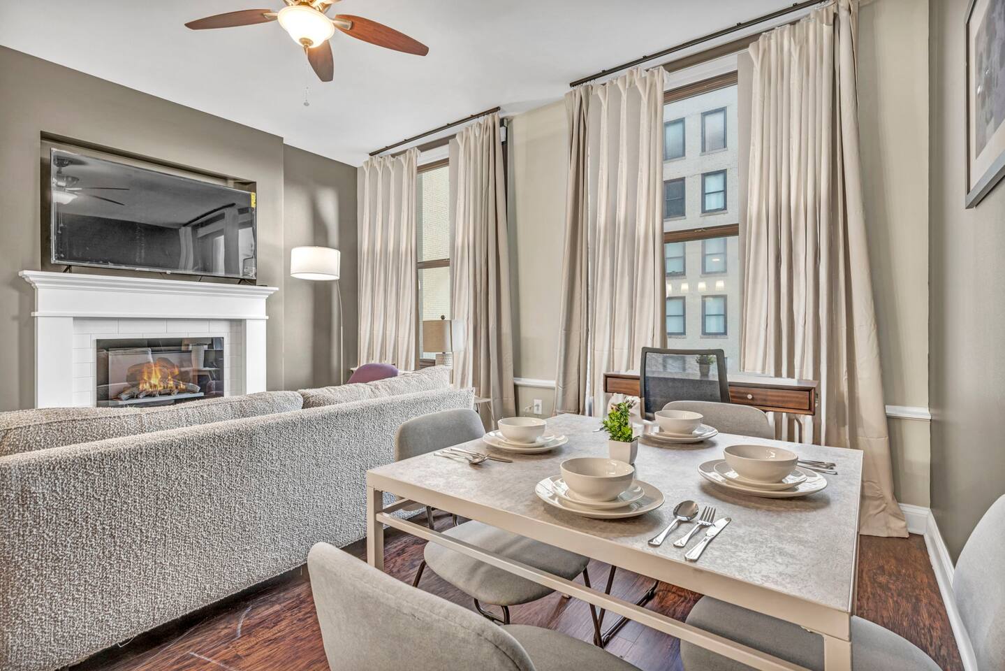 ★ ADDITIONAL ACCOMMODATION ★ Traveling in a larger group, or your preferred dates are already taken? You'll be happy to know that we offer additional units in the building with an option of renting multiple together. Please browse our host profile for the complete list of gorgeous listings. ★ CLEANING & SANITIZATION ★ Health, safety, and well-being of our guests are of utmost importance. For this reason, we use a thorough cleaning process after each check-out. ★ GUEST SCREENING & DAMAGE PROTECTION ★ The Primary Reservation holder must provide a valid Government-issued ID prior to check-in. ★ BUILDING & CONDO SECURITY MEASURES ★ • Minut noise detectors are located in the apartment and monitor noise levels. • Surveillance cameras monitor building common areas (never inside the unit). • 24/7 building security. ★ PETS ALLOWED ★ We love those little (and not so little) furry bundles of joy. We charge a $25 per night, $100 per week, or $300 per month pet cleaning fee (per pet). This fee will be charged via Airbnb Resolution Center if not collected at booking. ✔ Maximum of 2 pets, must be well trained. ✔ No aggressive breeds or pit bulls permitted. ★ NO SMOKING INSIDE ★ Please refrain from smoking inside the home. 🚭 Any evidence of smoking will result in fees for odor removal and furniture cleaning and immediate eviction without refund. ★ NO PARTIES/EVENTS ★ We kindly ask you to treat our home as your own to preserve its pristine condition for future guests and your return visits. Any unauthorized parties or events will result in immediate eviction without refund. ★ ADDITIONAL FEES ★ • Early Check-In: $25 (2 PM) or $50 (12 PM), subject to host approval and cleaner availability. • Late Check-Out: $25 (12 PM), subject to host approval and cleaner availability. • Lost Fob/Card: $150 replacement fee. Fobs/cards must be returned to the lockbox upon checkout. ★ AMENITY DISCLAIMER ★ • Amenities outside of the apartment (gym, garage, etc.) are managed by the building and subject to maintenance outside of our control. • Temporary amenity closures do not warrant a refund. Please inquire about amenity status before booking. ★ PARKING INFORMATION ★ • $20/day for unlimited in/out access for 1 car. Please message us to request a parking pass and we will send a payment request. • Parking garage is managed by an independent company across the building. • Garage clearance: 6'-3". ★ FIREPLACE NOTICE ★ The fireplace is for display only and is not functional