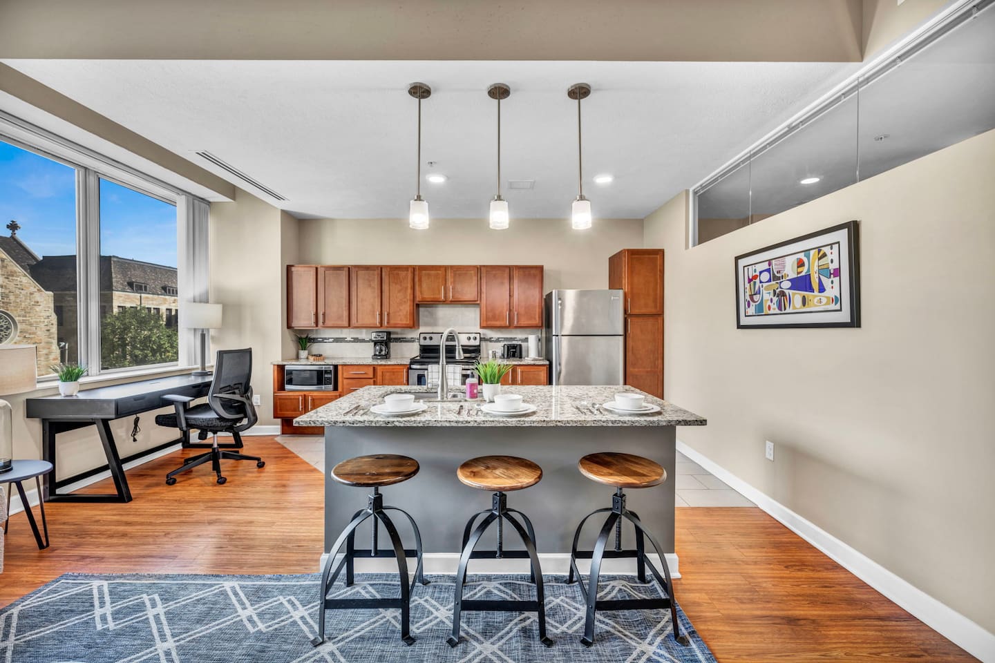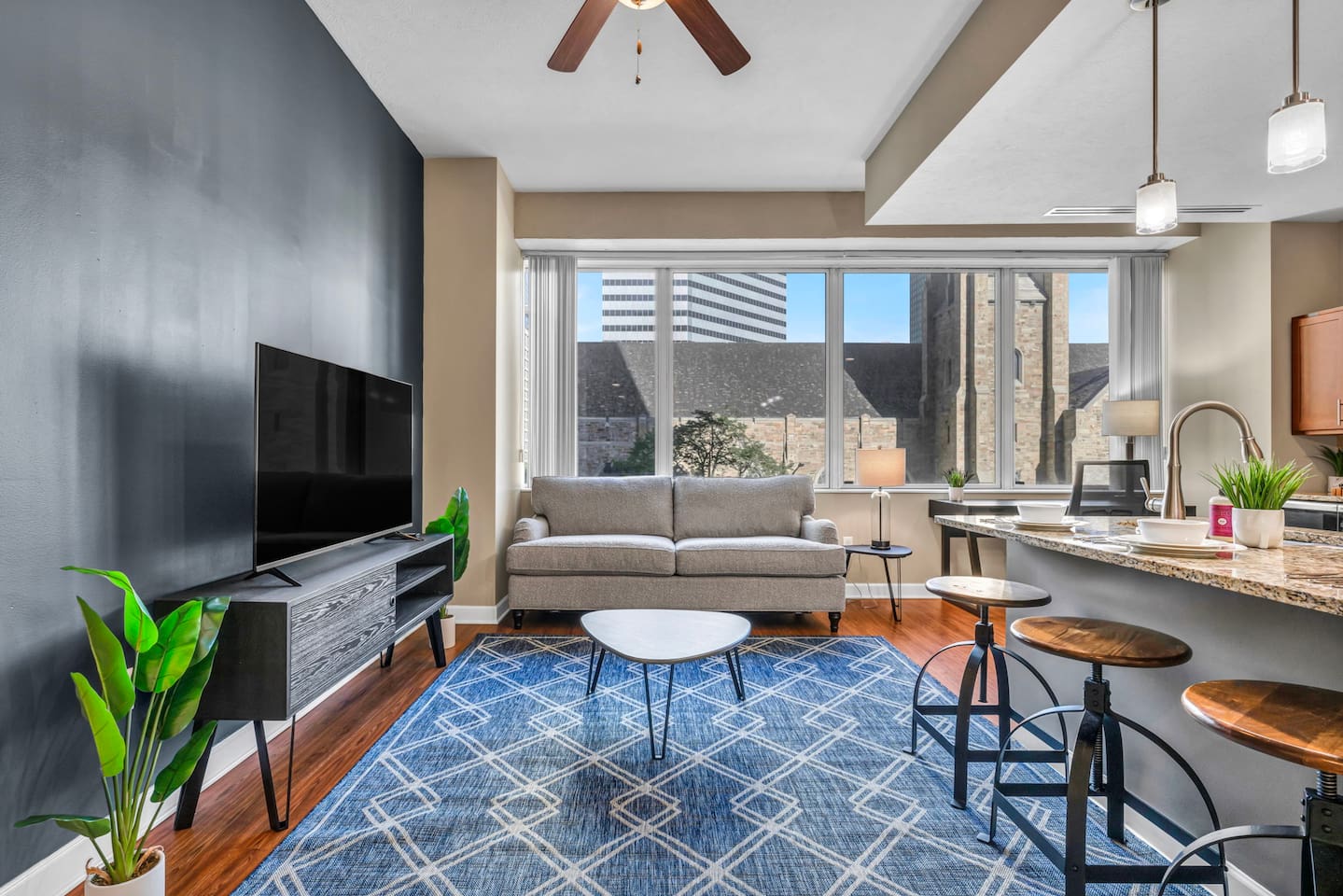 ★ ADDITIONAL ACCOMMODATION ★ Traveling in a larger group, or your preferred dates are already taken? You'll be happy to know that we offer additional units in the building with an option of renting multiple together. Please browse our host profile for the complete list of gorgeous listings. ★ CLEANING & SANITIZATION ★ Health, safety, and well-being of our guests are of utmost importance. For this reason, we use a thorough cleaning process after each check-out. ★ GUEST SCREENING & DAMAGE PROTECTION ★ The Primary Reservation holder must provide a valid Government-issued ID prior to check-in. ★ BUILDING & CONDO SECURITY MEASURES ★ • Minut noise detectors are located in the apartment and monitor noise levels. • Surveillance cameras monitor building common areas (never inside the unit). • 24/7 building security. ★ PETS ALLOWED ★ We love those little (and not so little) furry bundles of joy. We charge a $25 per night, $100 per week, or $300 per month pet cleaning fee (per pet). This fee will be charged via Airbnb Resolution Center if not collected at booking. ✔ Maximum of 2 pets, must be well trained. ✔ No aggressive breeds or pit bulls permitted. ★ NO SMOKING INSIDE ★ Please refrain from smoking inside the home. 🚭 Any evidence of smoking will result in fees for odor removal and furniture cleaning and immediate eviction without refund. ★ NO PARTIES/EVENTS ★ We kindly ask you to treat our home as your own to preserve its pristine condition for future guests and your return visits. Any unauthorized parties or events will result in immediate eviction without refund. ★ ADDITIONAL FEES ★ • Early Check-In: $25 (2 PM) or $50 (12 PM), subject to host approval and cleaner availability. • Late Check-Out: $25 (12 PM), subject to host approval and cleaner availability. • Lost Fob/Card: $150 replacement fee. Fobs/cards must be returned to the lockbox upon checkout. ★ AMENITY DISCLAIMER ★ • Amenities outside of the apartment (gym, garage, etc.) are managed by the building and subject to maintenance outside of our control. • Temporary amenity closures do not warrant a refund. Please inquire about amenity status before booking. ★ PARKING INFORMATION ★ • $20/day for unlimited in/out access for 1 car. Please message us to request a parking pass and we will send a payment request. • Parking garage is managed by an independent company across the building. • Garage clearance: 6'-3". ★ FIREPLACE NOTICE ★ The fireplace is for display only and is not functional.