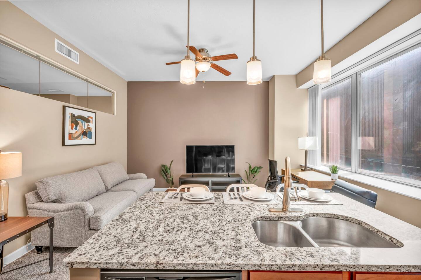 ★ ADDITIONAL ACCOMMODATION ★ Traveling in a larger group, or your preferred dates are already taken? You'll be happy to know that we offer additional units in the building with an option of renting multiple together. Please browse our host profile for the complete list of gorgeous listings. ★ CLEANING & SANITIZATION ★ Health, safety, and well-being of our guests are of utmost importance. For this reason, we use a thorough cleaning process after each check-out. ★ GUEST SCREENING & DAMAGE PROTECTION ★ The Primary Reservation holder must provide a valid Government-issued ID prior to check-in. ★ BUILDING & CONDO SECURITY MEASURES ★ • Minut noise detectors are located in the apartment and monitor noise levels. • Surveillance cameras monitor building common areas (never inside the unit). • 24/7 building security. ★ PETS ALLOWED ★ We love those little (and not so little) furry bundles of joy. We charge a $25 per night, $100 per week, or $300 per month pet cleaning fee (per pet). This fee will be charged via Airbnb Resolution Center if not collected at booking. ✔ Maximum of 2 pets, must be well trained. ✔ No aggressive breeds or pit bulls permitted. ★ NO SMOKING INSIDE ★ Please refrain from smoking inside the home. 🚭 Any evidence of smoking will result in fees for odor removal and furniture cleaning and immediate eviction without refund. ★ NO PARTIES/EVENTS ★ We kindly ask you to treat our home as your own to preserve its pristine condition for future guests and your return visits. Any unauthorized parties or events will result in immediate eviction without refund. ★ ADDITIONAL FEES ★ • Early Check-In: $25 (2 PM) or $50 (12 PM), subject to host approval and cleaner availability. • Late Check-Out: $25 (12 PM), subject to host approval and cleaner availability. • Lost Fob/Card: $150 replacement fee. Fobs/cards must be returned to the lockbox upon checkout. ★ AMENITY DISCLAIMER ★ • Amenities outside of the apartment (gym, garage, etc.) are managed by the building and subject to maintenance outside of our control. • Temporary amenity closures do not warrant a refund. Please inquire about amenity status before booking. ★ PARKING INFORMATION ★ • $20/day for unlimited in/out access for 1 car. Please message us to request a parking pass and we will send a payment request. • Parking garage is managed by an independent company across the building. • Garage clearance: 6'-3". ★ FIREPLACE NOTICE ★ The fireplace is for display only and is not functional.