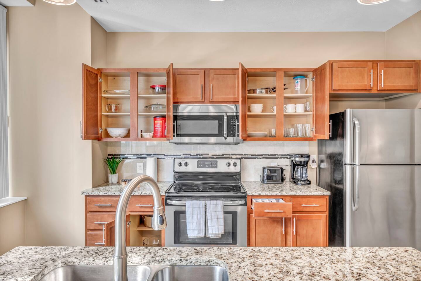 The luxurious condo is built to provide a premium getaway for visitors seeking the perfect stay. Its blend of modern elegance and upscale comfort in one of downtown Cleveland’s most desirable neighborhoods offers both relaxation and sophistication. Each room features high ceilings, stylish finishes, and carefully chosen décor that elevate the space with a contemporary yet timeless feel. Every detail is designed for comfort, from a fully equipped kitchen with modern appliances to cozy bedrooms with plush memory foam mattresses. Two highly comfortable bedrooms plus a sofa bed provide plenty of space for rest and relaxation after an exciting day exploring Cleveland. Finally, you’ll enjoy access to top-tier building amenities including a fitness center, fast elevators, 24/7 security, and nearby parking, all while being steps from restaurants, theaters, and sporting events. ★ LIVING ROOM ★ The living room is perfect for unwinding after a day in the city. Lounge on the sofa, stream your favorite shows, or enjoy the stylish setting. ✔ Queen-Size Sofa Bed ✔ Elegant Décor & Finishes ✔ 55" Smart TV with Streaming Apps ✔ Stylish Coffee Table ✔ Comfortable Seating ★ KITCHEN & DINING ★ Cook and dine in style with a chef-inspired kitchen, or take advantage of the incredible dining options just steps away. ✔ Stove & Oven ✔ Microwave ✔ Coffee Maker ✔ Toaster ✔ Blender ✔ Refrigerator/Freezer ✔ Dishwasher ✔ Sink – Hot & Cold Water ✔ Glassware, Silverware, Pots & Pans ✔ Washer/Dryer ✔ Dining Table with Seating for 4 ✔ Kitchen Island with Seating for 3 ★ SLEEPING ARRANGEMENTS – 1 BEDROOM ★ Designed for comfort and style, this spacious one-bedroom offers the perfect retreat after a day spent exploring downtown Cleveland. ♛ Master Bedroom: King-Size Memory Foam Bed ♛ Living Room: Queen-Size Sofa Bed ✔ Premium Pillows, Linens, and Sheets ✔ Spacious Closets with Hangers and Shelves ✔ Night Stands with Reading Lamps ✔ Smart TVs ★ BATHROOM ★ The condo offers a spa-like bathroom stocked with essential toiletries and fresh towels for maximum comfort. ✔ Walk-In Shower ✔ Modern Vanity with Mirror ✔ Toilet ✔ Towels ✔ Hair Dryer ✔ Essential Toiletries ★ BUILDING AMENITIES ★ ✔ Parking Available ($20/day charged after booking is approved if requested, unlimited in/out access. Most parking garages in downtown charge $10-20 per 1 entry/day) ✔ 24/7 Security ✔ Fast Elevators ✔ Fully Equipped Gym ✔ On-Site Dining: Al’s Deli (Mon–Fri, coffee, breakfast & lunch) ★ PRIME DOWNTOWN LOCATION ★ You’re within easy walking distance of Cleveland’s top attractions: ✔ Rocket Mortgage FieldHouse – 8 min walk ✔ Progressive Field – 10 min walk ✔ FirstEnergy Stadium – 12 min walk ✔ Huntington Convention Center – 10 min walk ✔ East 4th Street Dining – 6 min walk ✔ Rock & Roll Hall of Fame – 15 min walk ✔ Public Square Park – 8 min walk ✔ Lake Erie Waterfront & Pier – 15 min walk Nearby Dining: Marble Room (2 min walk), Butcher and the Brewer (6 min walk), Mabel’s BBQ (6 min walk), TownHall (7 min drive). Nearby Parks: Perk Park (3 min walk), Mall B (8 min walk), Edgewater Park & Beach (10 min drive). Medical Facilities: Cleveland Clinic (15 min drive), University Hospitals (15 min drive), MetroHealth (10 min drive). Universities: Cleveland State University (10 min walk), Case Western Reserve (15 min drive). This property combines downtown luxury with modern comfort, making it the perfect base for business, leisure, or convention travel. Whether you’re here for dining, theater, sports, or the lakefront, you’ll be right in the heart of it all.