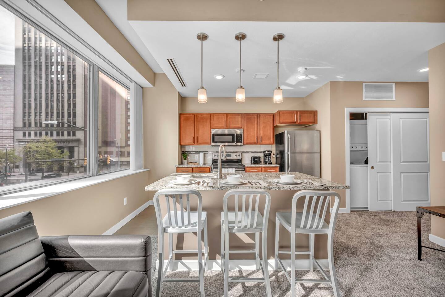 Stay at one of Cleveland’s premier luxury residences, a condo crafted for guests who value elegance, comfort, and convenience. With a Walk Score of 98/100, you’re only moments from the city’s best dining, nightlife, and attractions—then retreat to your private oasis to unwind in style. ✔️ Luxury 1BR/1Bath Condo ✔️ Open-Concept Living ✔️ Full Modern Kitchen ✔️ Smart TVs ✔️ High-Speed Wi-Fi ✔️ Workspace ✔️ Washer/Dryer ✔️ Parking Available $ ✔️ 24/7 Security ✔️ Fitness Center See more below!