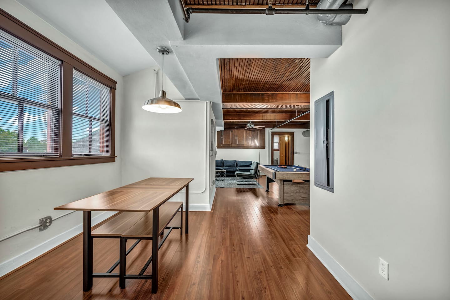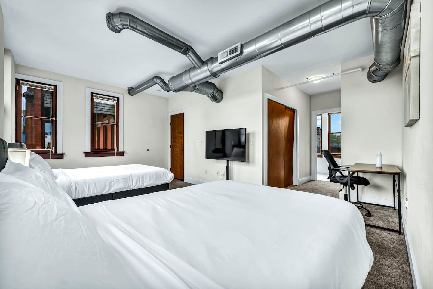 Welcome to La Casa de Cathedral, a One-Of-A-Kind Industrial Modern Townhouse w/ 20 ft ceilings. This property is sure to be an amazing experience with your group! Featuring an open concept living area w/ unobstructed views, pool table, fireplace & private patio!! Enjoy coffee & baked treats at Rising Star Coffee Roasters located in the building *Please note 3rd bedroom does not have a door & is open access. IMPORTANT: Read entire description to the bottom, building rules are STRICTLY enforced.