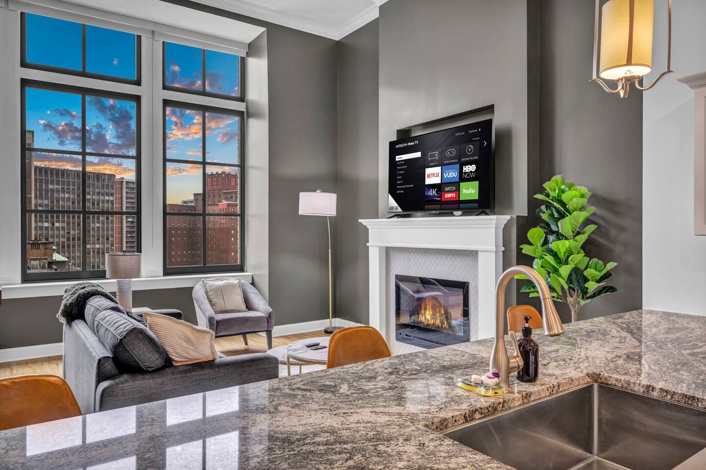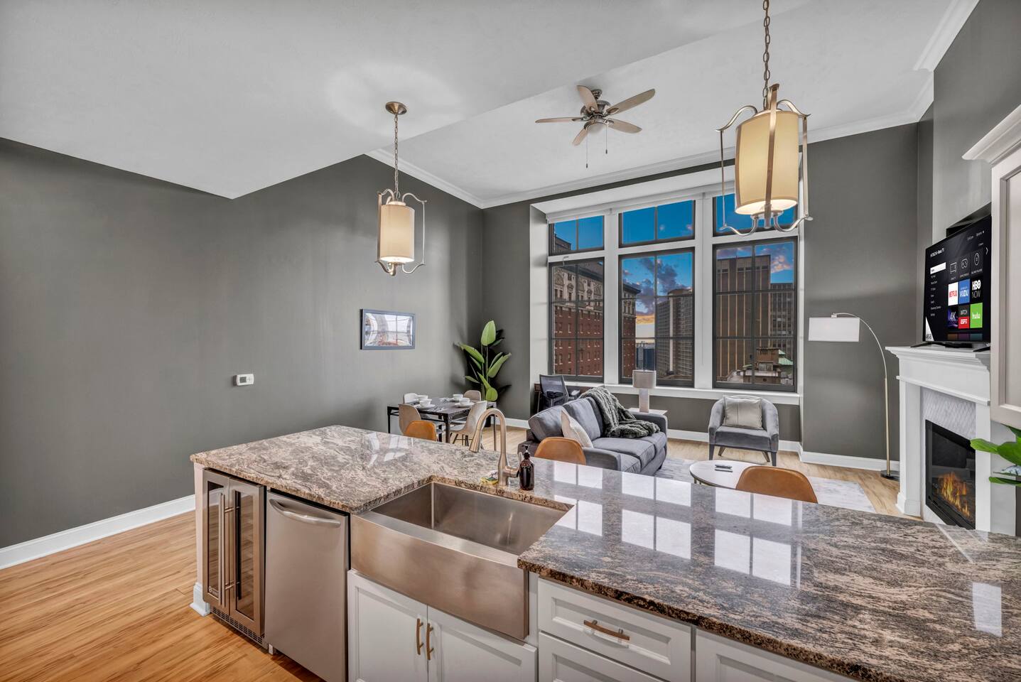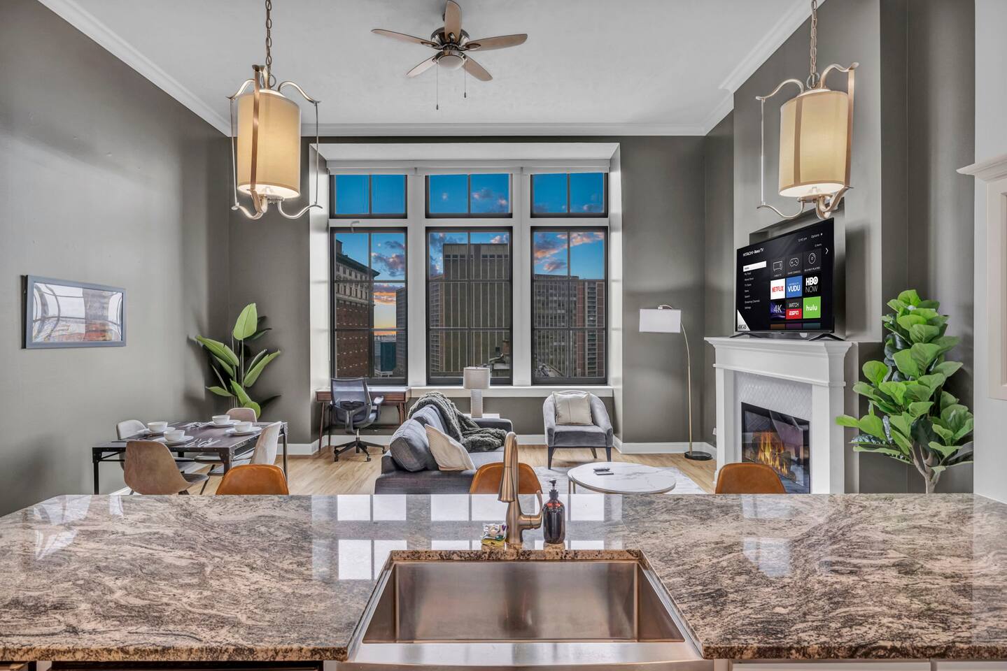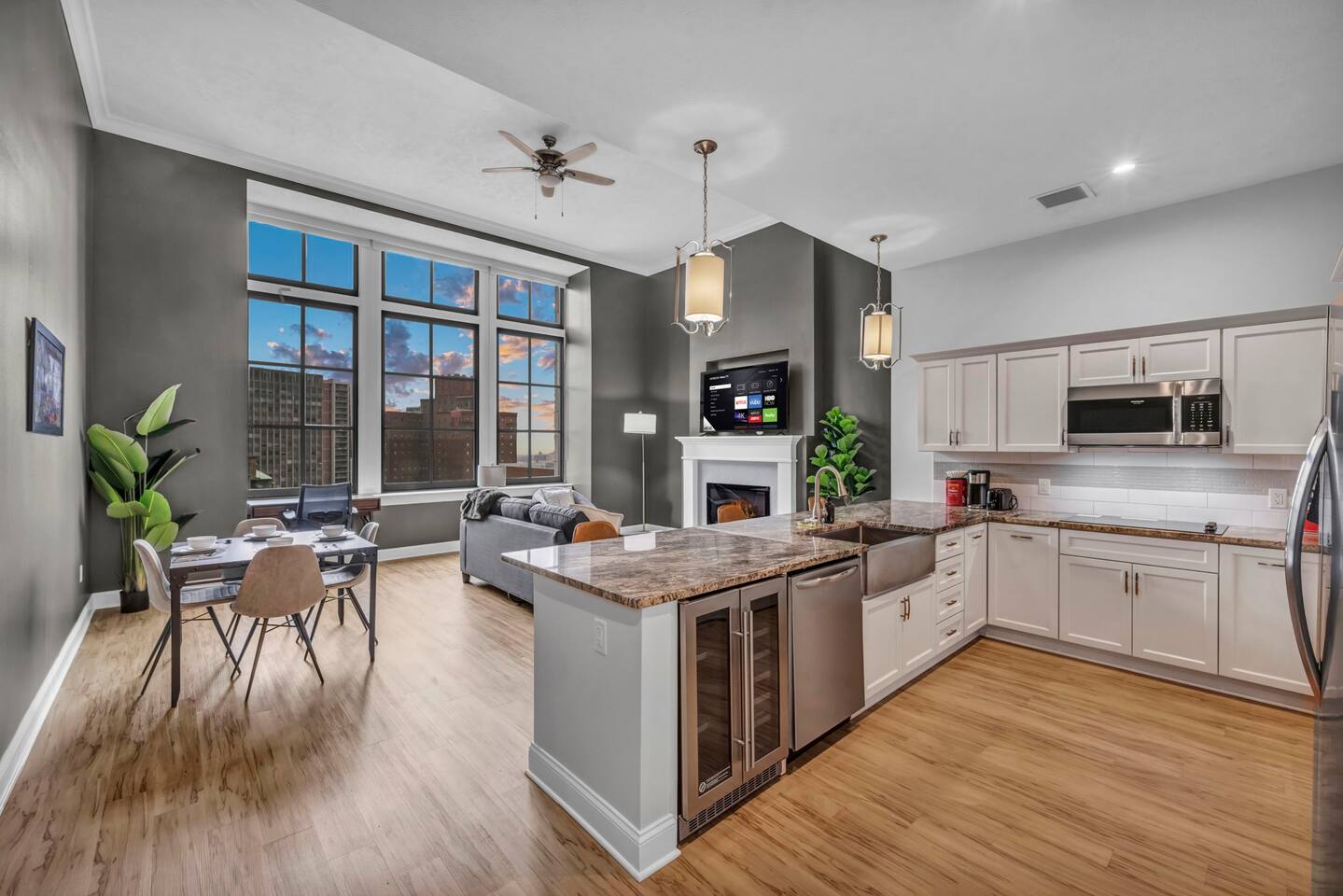 ★ ADDITIONAL ACCOMMODATION ★ Traveling in a larger group, or your preferred dates are already taken? You'll be happy to know that we offer additional units in the building with an option of renting multiple together. Please browse our host profile for the complete list of gorgeous listings. ★ CLEANING & SANITIZATION ★ Health, safety, and well-being of our guests are of utmost importance. For this reason, we use a thorough cleaning process after each check-out. ★ GUEST SCREENING & DAMAGE PROTECTION ★ The Primary Reservation holder must provide a valid Government-issued ID prior to check-in. ★ BUILDING & CONDO SECURITY MEASURES ★ • Minut noise detectors are located in the apartment and monitor noise levels. • Surveillance cameras monitor building common areas (never inside the unit). • 24/7 building security. ★ PETS ALLOWED ★ We love those little (and not so little) furry bundles of joy. We charge a $25 per night, $100 per week, or $300 per month pet cleaning fee (per pet). This fee will be charged via Airbnb Resolution Center if not collected at booking. ✔ Maximum of 2 pets, must be well trained. ✔ No aggressive breeds or pit bulls permitted. ★ NO SMOKING INSIDE ★ Please refrain from smoking inside the home. 🚭 Any evidence of smoking will result in fees for odor removal and furniture cleaning and immediate eviction without refund. ★ NO PARTIES/EVENTS ★ We kindly ask you to treat our home as your own to preserve its pristine condition for future guests and your return visits. Any unauthorized parties or events will result in immediate eviction without refund. ★ ADDITIONAL FEES ★ • Early Check-In: $25 (2 PM) or $50 (12 PM), subject to host approval and cleaner availability. • Late Check-Out: $25 (12 PM), subject to host approval and cleaner availability. • Lost Fob/Card: $150 replacement fee. Fobs/cards must be returned to the lockbox upon checkout. ★ AMENITY DISCLAIMER ★ • Amenities outside of the apartment (gym, garage, etc.) are managed by the building and subject to maintenance outside of our control. • Temporary amenity closures do not warrant a refund. Please inquire about amenity status before booking. ★ PARKING INFORMATION ★ • $20/day for unlimited in/out access for 1 car. Please message us to request a parking pass and we will send a payment request. • Parking garage is managed by an independent company across the building. • Garage clearance: 6'-3". ★ FIREPLACE NOTICE ★ The fireplace is for display only and is not functional.