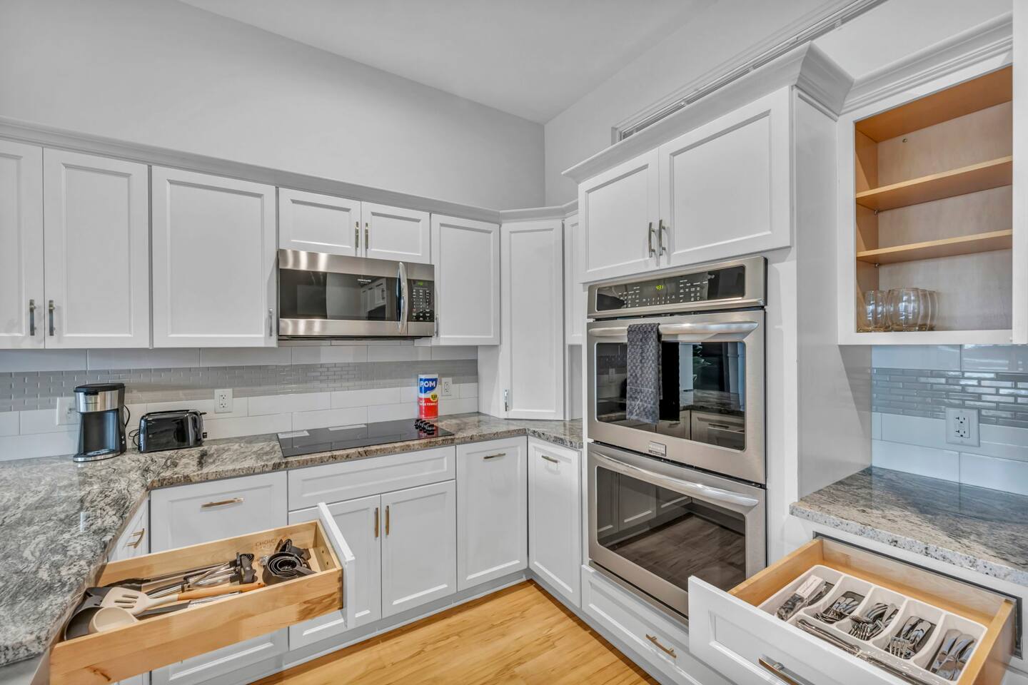 The luxurious condo in Playhouse Square is built to provide a premium getaway for visitors looking for the perfect stay. Its blend of modern elegance and historic charm in Cleveland’s most iconic neighborhood offers both relaxation and sophistication. Each room is enriched with soaring ceilings, crown moldings, and elegant finishes, accenting the timeless architecture with modern design. Every detail is well thought out, from fireplaces and a wine fridge to double ovens and comfortable furnishings. Two highly comfortable bedrooms plus a sofa bed provide all the space and rest you need after an exciting day of Cleveland adventures. Finally, you’ll enjoy access to top-tier building amenities including a fitness center, fast elevators, 24/7 security, and an on-site restaurant, all while being steps from theaters, dining, and sporting events. ★ LIVING ROOM ★ The living room is perfect for enjoying memorable moments after a day in the city. Relax on the sofa, stream your favorite shows, or simply enjoy the elegant setting. ✔ Queen-Size Sofa Bed ✔ Fireplace & Elegant Features ✔ 55" Smart TV with Streaming Apps ✔ Stylish Coffee Table ✔ Comfortable Seating ★ KITCHEN & DINING ★ Cook and dine in style with premium appliances and modern finishes, or enjoy the convenience of the on-site restaurant just downstairs. ✔ Double Ovens ✔ Wine Fridge ✔ Microwave ✔ Stove & Oven ✔ Toaster ✔ Blender ✔ Coffee Maker ✔ Refrigerator/Freezer ✔ Dishwasher ✔ Sink – Hot & Cold Water ✔ Glassware, Silverware, Pots & Pans ✔ Dining Table with Seating for 4 ✔ Kitchen Island with Seating for 3 ★ SLEEPING ARRANGEMENTS – 2 BEDROOMS ★ Designed for comfort and elegance, these bedrooms provide all the rest you need after a day exploring downtown Cleveland. ♛ Master Bedroom: King-Size Memory Foam Bed ♛ Bedroom 2: Queen-Size Memory Foam Bed ♛ Living Room: Queen-Size Sofa Bed ✔ Premium Pillows, Linens, and Sheets ✔ Spacious Closets with Hangers and Shelves ✔ Night Stands with Reading Lamps ✔ Smart TVs ★ BATHROOMS ★ The condo offers spa-like bathrooms stocked with essential toiletries and fresh towels for maximum comfort. ✔ Walk-In Shower ✔ Modern Vanity with Mirror ✔ Toilet ✔ Towels ✔ Hair Dryer ✔ Essential Toiletries ★ BUILDING AMENITIES ★ ✔ Parking Available ($20/day charged after booking is approved if requested, unlimited in/out access. Most parking garages in downtown charge $10-20 per 1 entry/day) ✔ 24/7 Security ✔ Fast Elevators ✔ Fully Equipped Gym ✔ On-Site Restaurant (Yours Truly Playhouse Square) ★ PRIME DOWNTOWN LOCATION ★ Situated directly in Playhouse Square, you’re steps away from Cleveland’s top attractions: ✔ Rocket Mortgage FieldHouse – 4 min walk ✔ Progressive Field – 6 min walk ✔ FirstEnergy Stadium – 10 min walk ✔ Huntington Convention Center – 9 min walk ✔ East 4th Street Dining – 4 min walk ✔ Rock & Roll Hall of Fame – 12 min walk ✔ Public Square Park – 7 min walk ✔ Lake Erie Waterfront & Pier – 12 min walk Nearby Dining: Butcher and the Brewer (4 min walk), Mabel’s BBQ (6 min walk), TownHall (7 min drive). Nearby Parks: Perk Park (2 min walk), Mall B (6 min walk), Edgewater Park & Beach (10 min drive). Medical Facilities: Cleveland Clinic (15 min drive), University Hospitals (15 min drive), MetroHealth (10 min drive). Universities: Cleveland State University (12 min walk), Case Western Reserve (15 min drive). This property combines historic luxury with modern comfort, making it the ideal base for business, leisure, or convention travel. Whether you’re here for world-class dining, theater, sports, or just to explore the city, you’ll find yourself at the center of it all.