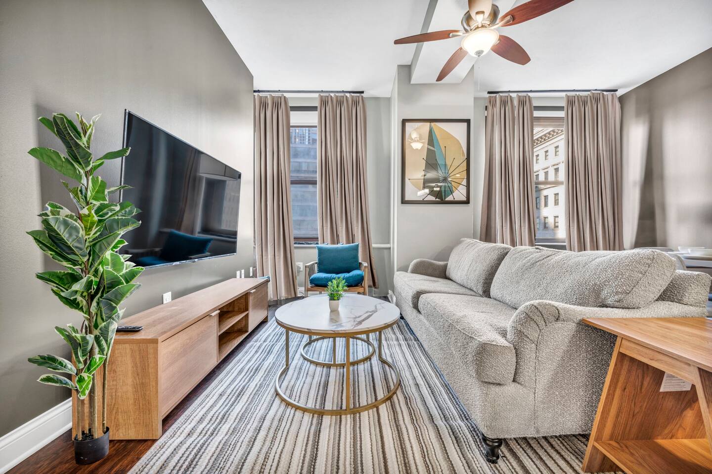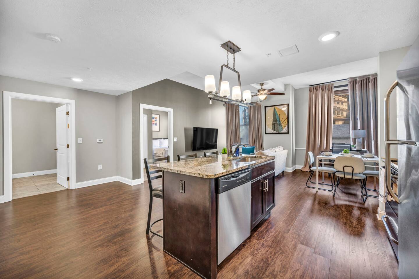 ★ ADDITIONAL ACCOMMODATION ★ Traveling in a larger group, or your preferred dates are already taken? You'll be happy to know that we offer additional units in the building with an option of renting multiple together. Please browse our host profile for the complete list of gorgeous listings. ★ CLEANING & SANITIZATION ★ Health, safety, and well-being of our guests are of utmost importance. For this reason, we use a thorough cleaning process after each check-out. ★ GUEST SCREENING & DAMAGE PROTECTION ★ The Primary Reservation holder must provide a valid Government-issued ID prior to check-in. ★ BUILDING & CONDO SECURITY MEASURES ★ • Minut noise detectors are located in the apartment and monitor noise levels. • Surveillance cameras monitor building common areas (never inside the unit). • 24/7 building security. ★ PETS ALLOWED ★ We love those little (and not so little) furry bundles of joy. We charge a $25 per night, $100 per week, or $300 per month pet cleaning fee (per pet). This fee will be charged via Airbnb Resolution Center if not collected at booking. ✔ Maximum of 2 pets, must be well trained. ✔ No aggressive breeds or pit bulls permitted. ★ NO SMOKING INSIDE ★ Please refrain from smoking inside the home. 🚭 Any evidence of smoking will result in fees for odor removal and furniture cleaning and immediate eviction without refund. ★ NO PARTIES/EVENTS ★ We kindly ask you to treat our home as your own to preserve its pristine condition for future guests and your return visits. Any unauthorized parties or events will result in immediate eviction without refund. ★ ADDITIONAL FEES ★ • Early Check-In: $25 (2 PM) or $50 (12 PM), subject to host approval and cleaner availability. • Late Check-Out: $25 (12 PM), subject to host approval and cleaner availability. • Lost Fob/Card: $150 replacement fee. Fobs/cards must be returned to the lockbox upon checkout. ★ AMENITY DISCLAIMER ★ • Amenities outside of the apartment (gym, garage, etc.) are managed by the building and subject to maintenance outside of our control. • Temporary amenity closures do not warrant a refund. Please inquire about amenity status before booking. ★ PARKING INFORMATION ★ • $20/day for unlimited in/out access for 1 car. Please message us to request a parking pass and we will send a payment request. • Parking garage is managed by an independent company across the building. • Garage clearance: 6'-3". ★ FIREPLACE NOTICE ★ The fireplace is for display only and is not functional.