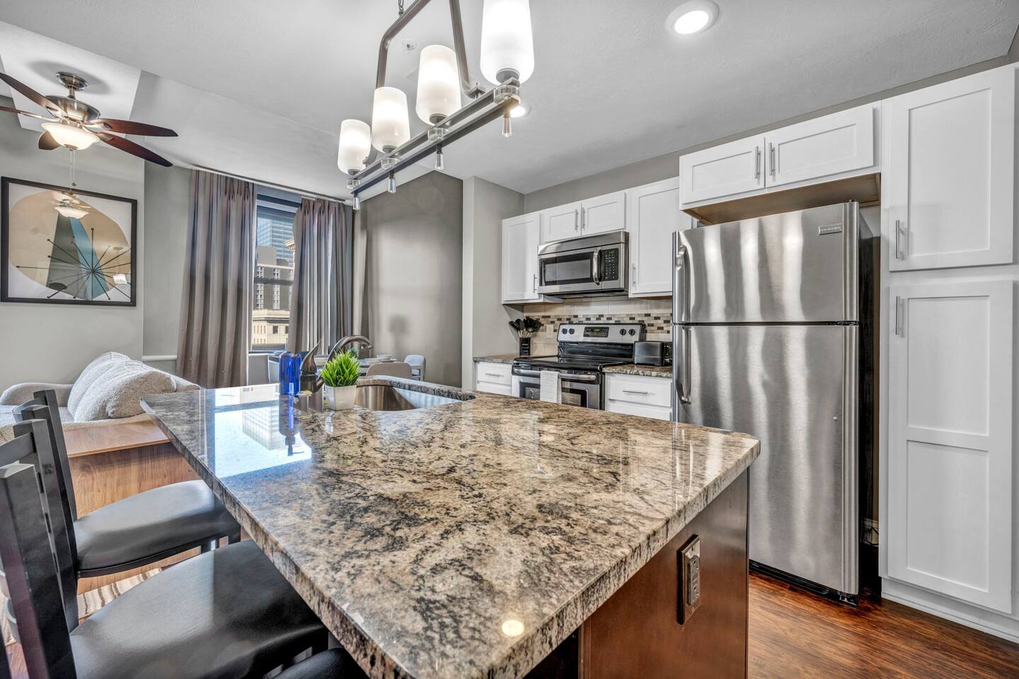 Stay at one of Cleveland’s premier luxury residences, a condo crafted for guests who value elegance, comfort, and convenience. With a Walk Score of 98/100, you’re only moments from the city’s best dining, nightlife, and attractions—then retreat to your private oasis to unwind in style. ✔️ Luxury 1BR/1Bath Condo ✔️ Open-Concept Living ✔️ Full Modern Kitchen ✔️ Smart TVs ✔️ High-Speed Wi-Fi ✔️ Workspace ✔️ Washer/Dryer ✔️ Parking Available $ ✔️ 24/7 Security ✔️ Fitness Center See more below!