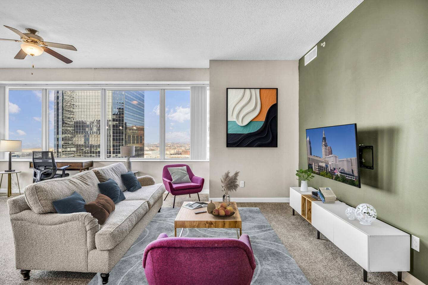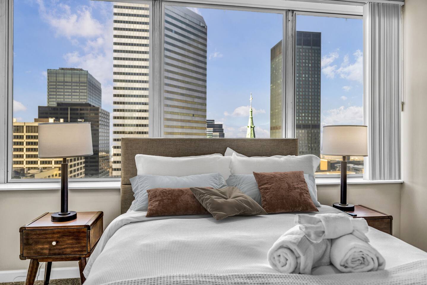 Stay at one of Cleveland’s premier luxury residences, a condo crafted for guests who value elegance, comfort, and convenience. With a Walk Score of 98/100, you’re only moments from the city’s best dining, nightlife, and attractions—then retreat to your private oasis to unwind in style. ✔️ Luxury 2BR/2Bath Condo ✔️ Open-Concept Living ✔️ Full Modern Kitchen ✔️ Smart TVs ✔️ High-Speed Wi-Fi ✔️ Workspace ✔️ Washer/Dryer ✔️ Parking Available $ ✔️ 24/7 Security ✔️ Fitness Center See more below!
