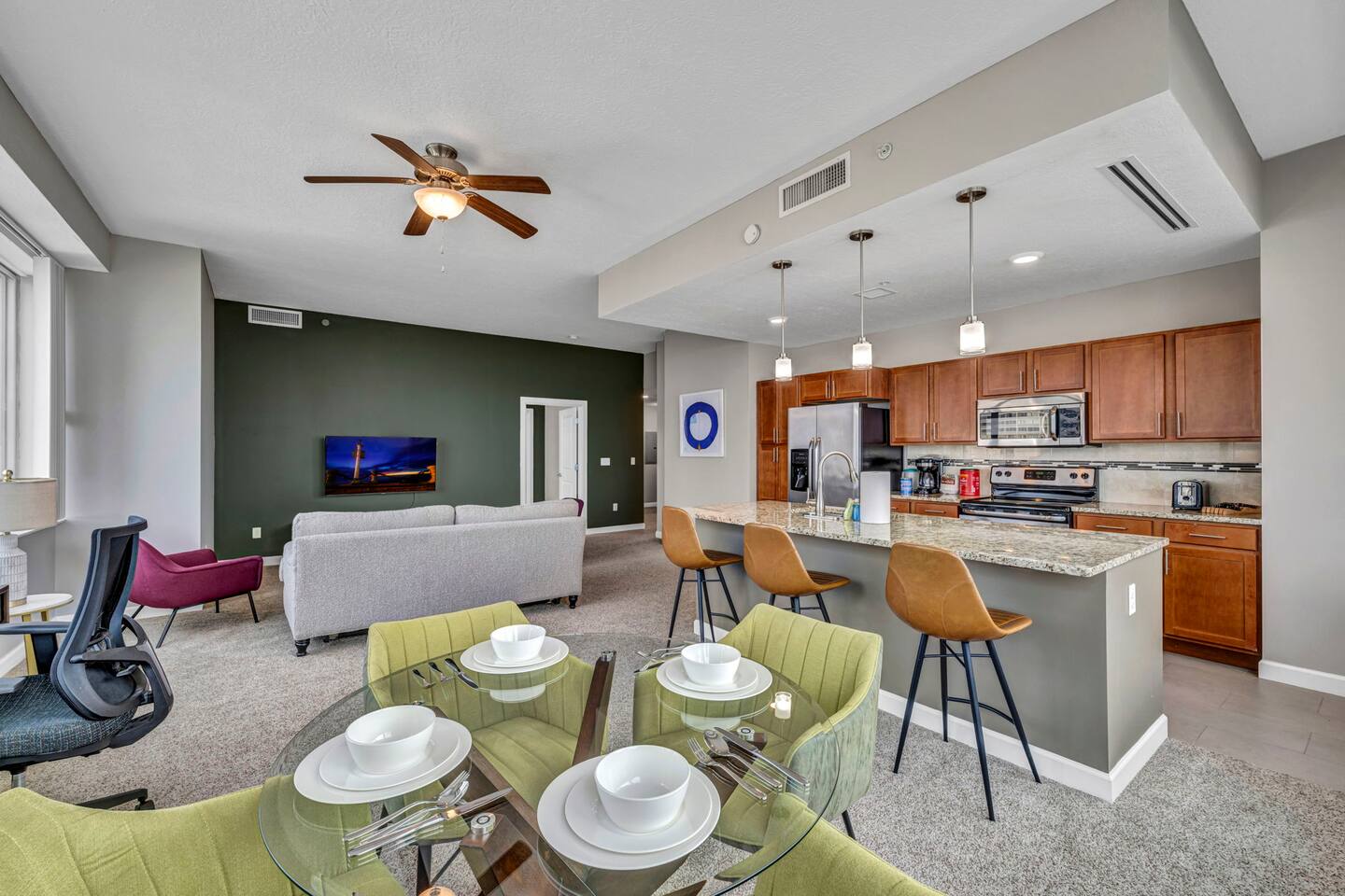 The home is exclusively yours, without interruption during your stay, so relax, unwind, and feel at home. Other than the already mentioned amenities, our home also comes with the following: ✔ High-Speed Wi-Fi ✔ Self Check-In (Smart Lock) ✔ Air Conditioning ✔ Washer/Dryer ✔ Iron/Board ✔ Paid Parking Available ✔ Fitness Center (Gym) ✔ Walking Distance to All Sporting Events ✔ Wine Fridge