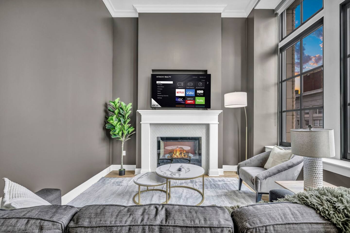 The luxurious condo in Playhouse Square is built to provide a premium getaway for visitors looking for the perfect stay. Its blend of modern elegance and historic charm in Cleveland’s most iconic neighborhood offers both relaxation and sophistication. Each room is enriched with soaring ceilings, crown moldings, and elegant finishes, accenting the timeless architecture with modern design. Every detail is well thought out, from fireplaces and a wine fridge to double ovens and comfortable furnishings. Two highly comfortable bedrooms plus a sofa bed provide all the space and rest you need after an exciting day of Cleveland adventures. Finally, you’ll enjoy access to top-tier building amenities including a fitness center, fast elevators, 24/7 security, and an on-site restaurant, all while being steps from theaters, dining, and sporting events. ★ LIVING ROOM ★ The living room is perfect for enjoying memorable moments after a day in the city. Relax on the sofa, stream your favorite shows, or simply enjoy the elegant setting. ✔ Queen-Size Sofa Bed ✔ Fireplace & Elegant Features ✔ 55" Smart TV with Streaming Apps ✔ Stylish Coffee Table ✔ Comfortable Seating ★ KITCHEN & DINING ★ Cook and dine in style with premium appliances and modern finishes, or enjoy the convenience of the on-site restaurant just downstairs. ✔ Double Ovens ✔ Wine Fridge ✔ Microwave ✔ Stove & Oven ✔ Toaster ✔ Blender ✔ Coffee Maker ✔ Refrigerator/Freezer ✔ Dishwasher ✔ Sink – Hot & Cold Water ✔ Glassware, Silverware, Pots & Pans ✔ Dining Table with Seating for 4 ✔ Kitchen Island with Seating for 3 ★ SLEEPING ARRANGEMENTS – 2 BEDROOMS ★ Designed for comfort and elegance, these bedrooms provide all the rest you need after a day exploring downtown Cleveland. ♛ Master Bedroom: King-Size Memory Foam Bed ♛ Bedroom 2: Queen-Size Memory Foam Bed ♛ Living Room: Queen-Size Sofa Bed ✔ Premium Pillows, Linens, and Sheets ✔ Spacious Closets with Hangers and Shelves ✔ Night Stands with Reading Lamps ✔ Smart TVs ★ BATHROOMS ★ The condo offers spa-like bathrooms stocked with essential toiletries and fresh towels for maximum comfort. ✔ Walk-In Shower ✔ Modern Vanity with Mirror ✔ Toilet ✔ Towels ✔ Hair Dryer ✔ Essential Toiletries ★ BUILDING AMENITIES ★ ✔ Parking Available ($20/day charged after booking is approved if requested, unlimited in/out access. Most parking garages in downtown charge $10-20 per 1 entry/day) ✔ 24/7 Security ✔ Fast Elevators ✔ Fully Equipped Gym ✔ On-Site Restaurant (Yours Truly Playhouse Square) ★ PRIME DOWNTOWN LOCATION ★ Situated directly in Playhouse Square, you’re steps away from Cleveland’s top attractions: ✔ Rocket Mortgage FieldHouse – 4 min walk ✔ Progressive Field – 6 min walk ✔ FirstEnergy Stadium – 10 min walk ✔ Huntington Convention Center – 9 min walk ✔ East 4th Street Dining – 4 min walk ✔ Rock & Roll Hall of Fame – 12 min walk ✔ Public Square Park – 7 min walk ✔ Lake Erie Waterfront & Pier – 12 min walk Nearby Dining: Butcher and the Brewer (4 min walk), Mabel’s BBQ (6 min walk), TownHall (7 min drive). Nearby Parks: Perk Park (2 min walk), Mall B (6 min walk), Edgewater Park & Beach (10 min drive). Medical Facilities: Cleveland Clinic (15 min drive), University Hospitals (15 min drive), MetroHealth (10 min drive). Universities: Cleveland State University (12 min walk), Case Western Reserve (15 min drive). This property combines historic luxury with modern comfort, making it the ideal base for business, leisure, or convention travel. Whether you’re here for world-class dining, theater, sports, or just to explore the city, you’ll find yourself at the center of it all.