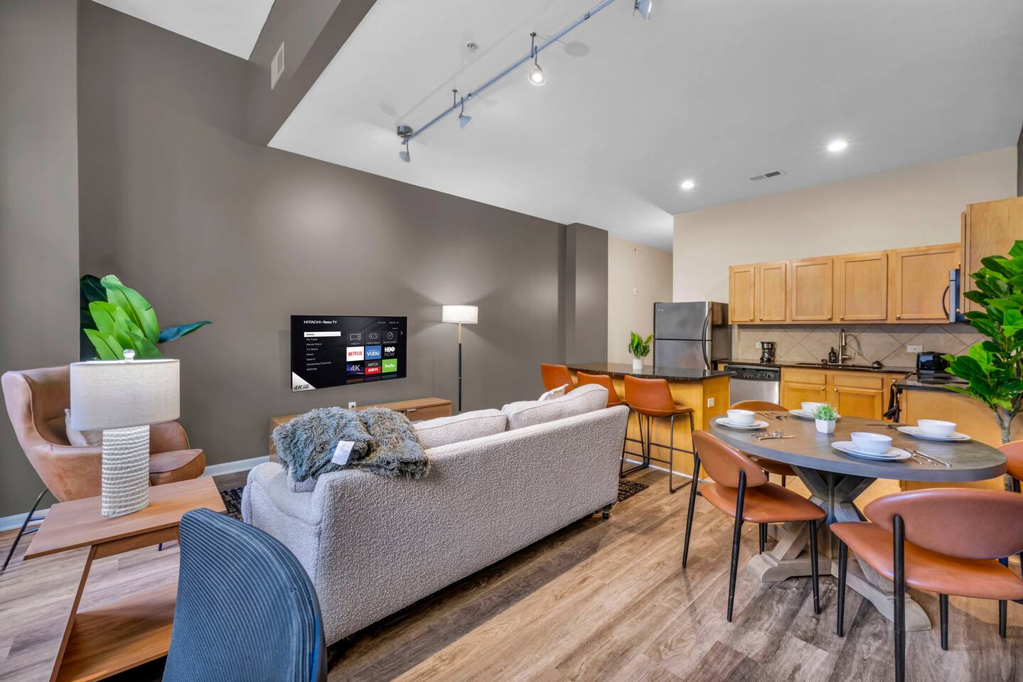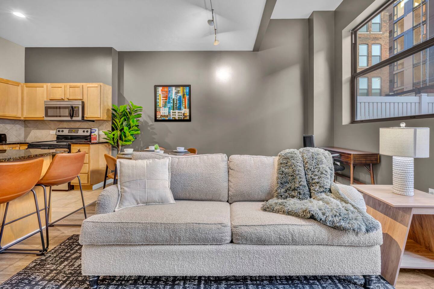 ★ ADDITIONAL ACCOMMODATION ★ Traveling in a larger group, or your preferred dates are already taken? You'll be happy to know that we offer additional units in the building with an option of renting multiple together. Please browse our host profile for the complete list of gorgeous listings. ★ CLEANING & SANITIZATION ★ Health, safety, and well-being of our guests are of utmost importance. For this reason, we use a thorough cleaning process after each check-out. ★ GUEST SCREENING & DAMAGE PROTECTION ★ The Primary Reservation holder must provide a valid Government-issued ID prior to check-in. ★ BUILDING & CONDO SECURITY MEASURES ★ • Minut noise detectors are located in the apartment and monitor noise levels. • Surveillance cameras monitor building common areas (never inside the unit). • 24/7 building security. ★ PETS ALLOWED ★ We love those little (and not so little) furry bundles of joy. We charge a $25 per night, $100 per week, or $300 per month pet cleaning fee (per pet). This fee will be charged via Airbnb Resolution Center if not collected at booking. ✔ Maximum of 2 pets, must be well trained. ✔ No aggressive breeds or pit bulls permitted. ★ NO SMOKING INSIDE ★ Please refrain from smoking inside the home. 🚭 Any evidence of smoking will result in fees for odor removal and furniture cleaning and immediate eviction without refund. ★ NO PARTIES/EVENTS ★ We kindly ask you to treat our home as your own to preserve its pristine condition for future guests and your return visits. Any unauthorized parties or events will result in immediate eviction without refund. ★ ADDITIONAL FEES ★ • Early Check-In: $25 (2 PM) or $50 (12 PM), subject to host approval and cleaner availability. • Late Check-Out: $25 (12 PM), subject to host approval and cleaner availability. • Lost Fob/Card: $150 replacement fee. Fobs/cards must be returned to the lockbox upon checkout. ★ AMENITY DISCLAIMER ★ • Amenities outside of the apartment (gym, garage, etc.) are managed by the building and subject to maintenance outside of our control. • Temporary amenity closures do not warrant a refund. Please inquire about amenity status before booking. ★ PARKING INFORMATION ★ • $20/day for unlimited in/out access for 1 car. Please message us to request a parking pass and we will send a payment request. • Parking garage is managed by an independent company across the building. • Garage clearance: 6'-3". ★ FIREPLACE NOTICE ★ The fireplace is for display only and is not functional.
