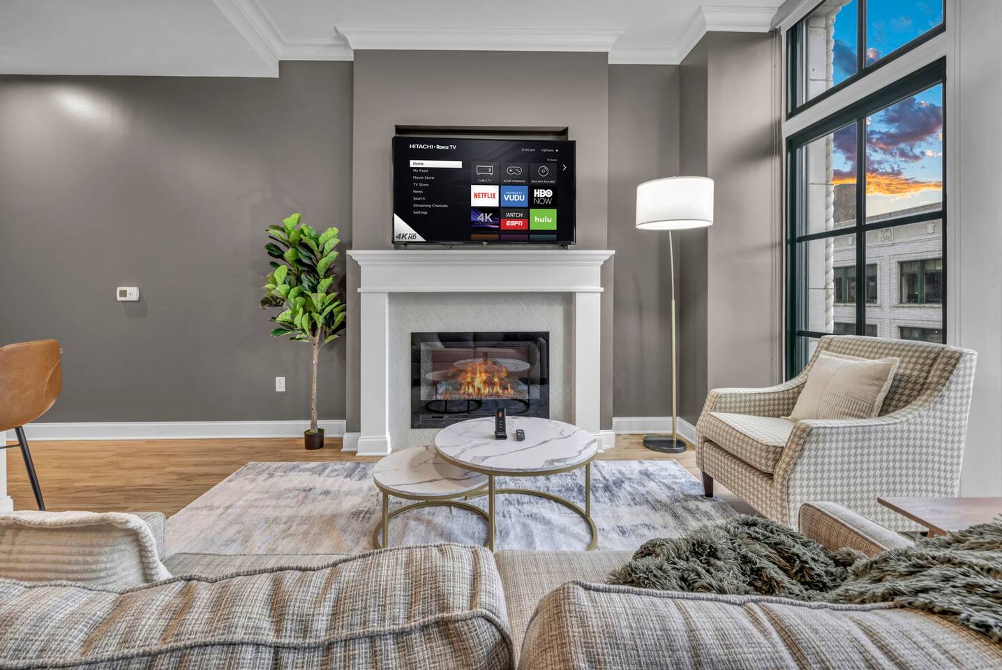 The luxurious condo in Playhouse Square is built to provide a premium getaway for visitors looking for the perfect stay. Its blend of modern elegance and historic charm in Cleveland’s most iconic neighborhood offers both relaxation and sophistication. Each room is enriched with soaring ceilings, crown moldings, and elegant finishes, accenting the timeless architecture with modern design. Every detail is well thought out, from fireplaces and a wine fridge to double ovens and comfortable furnishings. Two highly comfortable bedrooms plus a sofa bed provide all the space and rest you need after an exciting day of Cleveland adventures. Finally, you’ll enjoy access to top-tier building amenities including a fitness center, fast elevators, 24/7 security, and an on-site restaurant, all while being steps from theaters, dining, and sporting events. ★ LIVING ROOM ★ The living room is perfect for enjoying memorable moments after a day in the city. Relax on the sofa, stream your favorite shows, or simply enjoy the elegant setting. ✔ Queen-Size Sofa Bed ✔ Fireplace & Elegant Features ✔ 55" Smart TV with Streaming Apps ✔ Stylish Coffee Table ✔ Comfortable Seating ★ KITCHEN & DINING ★ Cook and dine in style with premium appliances and modern finishes, or enjoy the convenience of the on-site restaurant just downstairs. ✔ Double Ovens ✔ Wine Fridge ✔ Microwave ✔ Stove & Oven ✔ Toaster ✔ Blender ✔ Coffee Maker ✔ Refrigerator/Freezer ✔ Dishwasher ✔ Sink – Hot & Cold Water ✔ Glassware, Silverware, Pots & Pans ✔ Dining Table with Seating for 4 ✔ Kitchen Island with Seating for 3 ★ SLEEPING ARRANGEMENTS – 2 BEDROOMS ★ Designed for comfort and elegance, these bedrooms provide all the rest you need after a day exploring downtown Cleveland. ♛ Master Bedroom: King-Size Memory Foam Bed ♛ Bedroom 2: Queen-Size Memory Foam Bed ♛ Living Room: Queen-Size Sofa Bed ✔ Premium Pillows, Linens, and Sheets ✔ Spacious Closets with Hangers and Shelves ✔ Night Stands with Reading Lamps ✔ Smart TVs ★ BATHROOMS ★ The condo offers spa-like bathrooms stocked with essential toiletries and fresh towels for maximum comfort. ✔ Walk-In Shower ✔ Modern Vanity with Mirror ✔ Toilet ✔ Towels ✔ Hair Dryer ✔ Essential Toiletries ★ BUILDING AMENITIES ★ ✔ Parking Available ($20/day charged after booking is approved if requested, unlimited in/out access. Most parking garages in downtown charge $10-20 per 1 entry/day) ✔ 24/7 Security ✔ Fast Elevators ✔ Fully Equipped Gym ✔ On-Site Restaurant (Yours Truly Playhouse Square) ★ PRIME DOWNTOWN LOCATION ★ Situated directly in Playhouse Square, you’re steps away from Cleveland’s top attractions: ✔ Rocket Mortgage FieldHouse – 4 min walk ✔ Progressive Field – 6 min walk ✔ FirstEnergy Stadium – 10 min walk ✔ Huntington Convention Center – 9 min walk ✔ East 4th Street Dining – 4 min walk ✔ Rock & Roll Hall of Fame – 12 min walk ✔ Public Square Park – 7 min walk ✔ Lake Erie Waterfront & Pier – 12 min walk Nearby Dining: Butcher and the Brewer (4 min walk), Mabel’s BBQ (6 min walk), TownHall (7 min drive). Nearby Parks: Perk Park (2 min walk), Mall B (6 min walk), Edgewater Park & Beach (10 min drive). Medical Facilities: Cleveland Clinic (15 min drive), University Hospitals (15 min drive), MetroHealth (10 min drive). Universities: Cleveland State University (12 min walk), Case Western Reserve (15 min drive). This property combines historic luxury with modern comfort, making it the ideal base for business, leisure, or convention travel. Whether you’re here for world-class dining, theater, sports, or just to explore the city, you’ll find yourself at the center of it all.