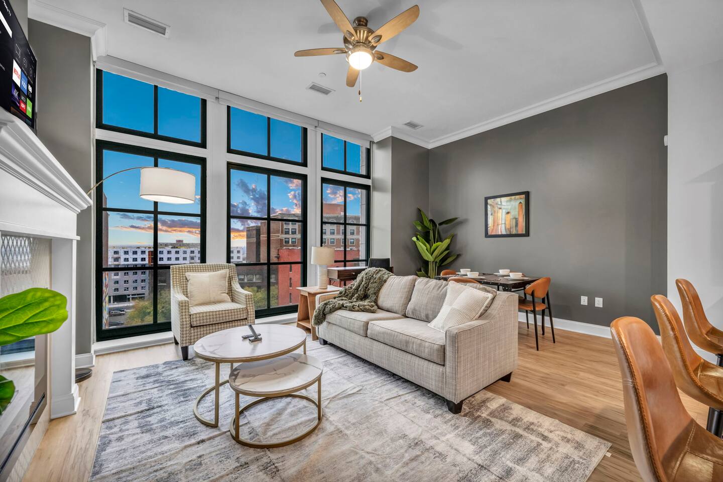 ★ ADDITIONAL ACCOMMODATION ★ Traveling in a larger group, or your preferred dates are already taken? You'll be happy to know that we offer additional units in the building with an option of renting multiple together. Please browse our host profile for the complete list of gorgeous listings. ★ CLEANING & SANITIZATION ★ Health, safety, and well-being of our guests are of utmost importance. For this reason, we use a thorough cleaning process after each check-out. ★ GUEST SCREENING & DAMAGE PROTECTION ★ The Primary Reservation holder must provide a valid Government-issued ID prior to check-in. ★ BUILDING & CONDO SECURITY MEASURES ★ • Minut noise detectors are located in the apartment and monitor noise levels. • Surveillance cameras monitor building common areas (never inside the unit). • 24/7 building security. ★ PETS ALLOWED ★ We love those little (and not so little) furry bundles of joy. We charge a $25 per night, $100 per week, or $300 per month pet cleaning fee (per pet). This fee will be charged via Airbnb Resolution Center if not collected at booking. ✔ Maximum of 2 pets, must be well trained. ✔ No aggressive breeds or pit bulls permitted. ★ NO SMOKING INSIDE ★ Please refrain from smoking inside the home. 🚭 Any evidence of smoking will result in fees for odor removal and furniture cleaning and immediate eviction without refund. ★ NO PARTIES/EVENTS ★ We kindly ask you to treat our home as your own to preserve its pristine condition for future guests and your return visits. Any unauthorized parties or events will result in immediate eviction without refund. ★ ADDITIONAL FEES ★ • Early Check-In: $25 (2 PM) or $50 (12 PM), subject to host approval and cleaner availability. • Late Check-Out: $25 (12 PM), subject to host approval and cleaner availability. • Lost Fob/Card: $150 replacement fee. Fobs/cards must be returned to the lockbox upon checkout. ★ AMENITY DISCLAIMER ★ • Amenities outside of the apartment (gym, garage, etc.) are managed by the building and subject to maintenance outside of our control. • Temporary amenity closures do not warrant a refund. Please inquire about amenity status before booking. ★ PARKING INFORMATION ★ • $20/day for unlimited in/out access for 1 car. Please message us to request a parking pass and we will send a payment request. • Parking garage is managed by an independent company across the building. • Garage clearance: 6'-3". ★ FIREPLACE NOTICE ★ The fireplace is for display only and is not functional.