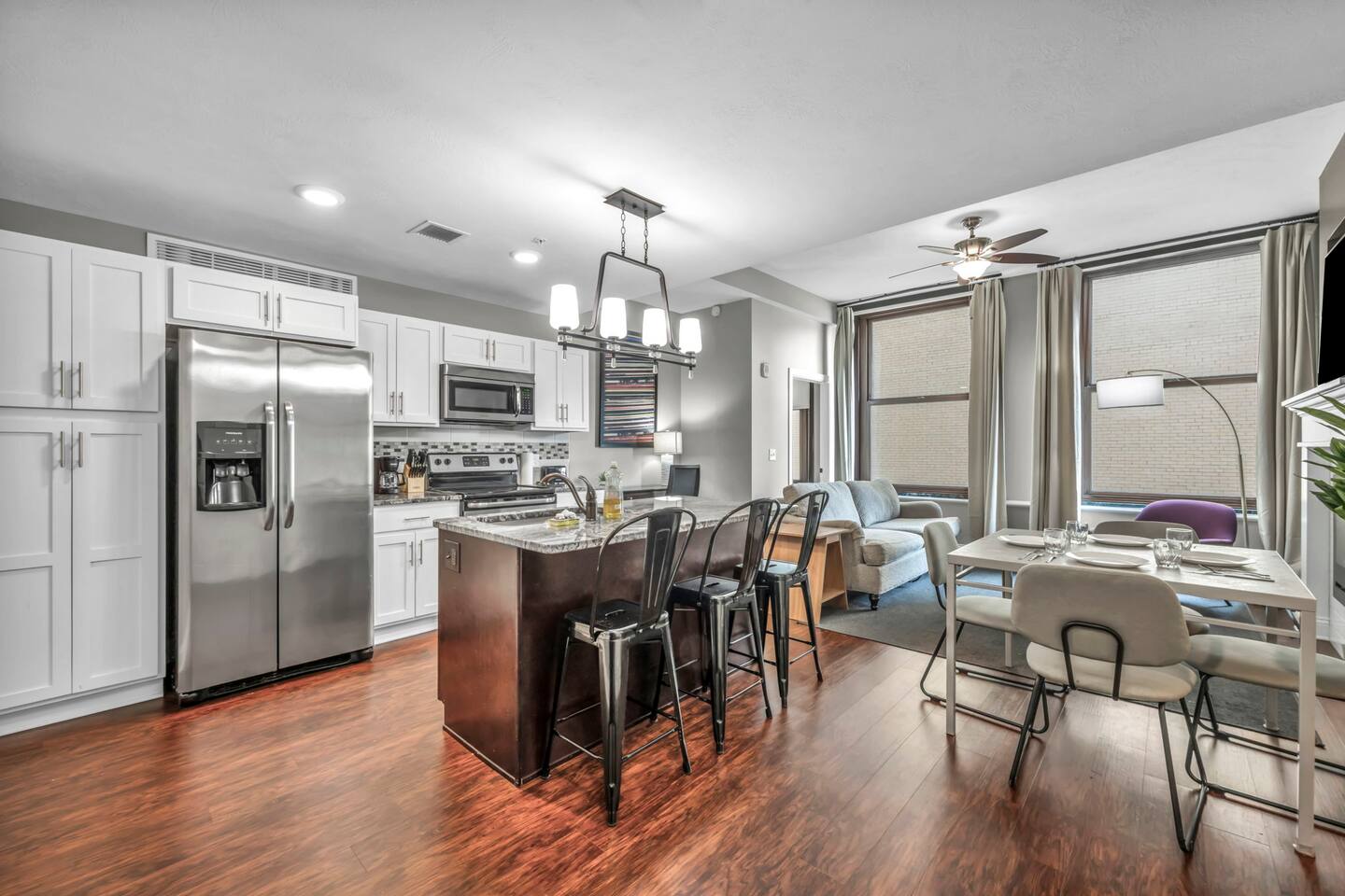 ★ ADDITIONAL ACCOMMODATION ★ Traveling in a larger group, or your preferred dates are already taken? You'll be happy to know that we offer additional units in the building with an option of renting multiple together. Please browse our host profile for the complete list of gorgeous listings. ★ CLEANING & SANITIZATION ★ Health, safety, and well-being of our guests are of utmost importance. For this reason, we use a thorough cleaning process after each check-out. ★ GUEST SCREENING & DAMAGE PROTECTION ★ The Primary Reservation holder must provide a valid Government-issued ID prior to check-in. ★ BUILDING & CONDO SECURITY MEASURES ★ • Minut noise detectors are located in the apartment and monitor noise levels. • Surveillance cameras monitor building common areas (never inside the unit). • 24/7 building security. ★ PETS ALLOWED ★ We love those little (and not so little) furry bundles of joy. We charge a $25 per night, $100 per week, or $300 per month pet cleaning fee (per pet). This fee will be charged via Airbnb Resolution Center if not collected at booking. ✔ Maximum of 2 pets, must be well trained. ✔ No aggressive breeds or pit bulls permitted. ★ NO SMOKING INSIDE ★ Please refrain from smoking inside the home. 🚭 Any evidence of smoking will result in fees for odor removal and furniture cleaning and immediate eviction without refund. ★ NO PARTIES/EVENTS ★ We kindly ask you to treat our home as your own to preserve its pristine condition for future guests and your return visits. Any unauthorized parties or events will result in immediate eviction without refund. ★ ADDITIONAL FEES ★ • Early Check-In: $25 (2 PM) or $50 (12 PM), subject to host approval and cleaner availability. • Late Check-Out: $25 (12 PM), subject to host approval and cleaner availability. • Lost Fob/Card: $150 replacement fee. Fobs/cards must be returned to the lockbox upon checkout. ★ AMENITY DISCLAIMER ★ • Amenities outside of the apartment (gym, garage, etc.) are managed by the building and subject to maintenance outside of our control. • Temporary amenity closures do not warrant a refund. Please inquire about amenity status before booking. ★ PARKING INFORMATION ★ • $20/day for unlimited in/out access for 1 car. Please message us to request a parking pass and we will send a payment request. • Parking garage is managed by an independent company across the building. • Garage clearance: 6'-3". ★ FIREPLACE NOTICE ★ The fireplace is for display only and is not functional