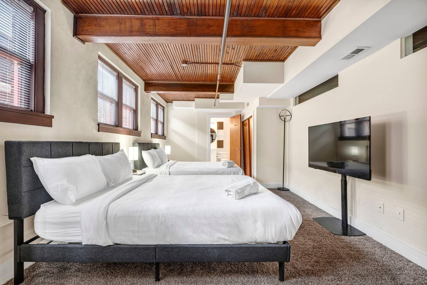 Our property is located only a short drive to the Stadium!! Welcome to our One-Of-A-Kind Industrial Penthouse Condo with a private elevator entrance! Massive 3 bedroom Penthouse Condo w/ large open floorplan, unobstructed views, pool table & an onsite gym! Enjoy coffee & baked treats at Rising Star Coffee Roasters in the building! Less than 5 Mins from DT Cleveland & Stadiums, 7 minutes to the beach, & only a 2 minute walk to Tremonts famous restaurants & Bars!